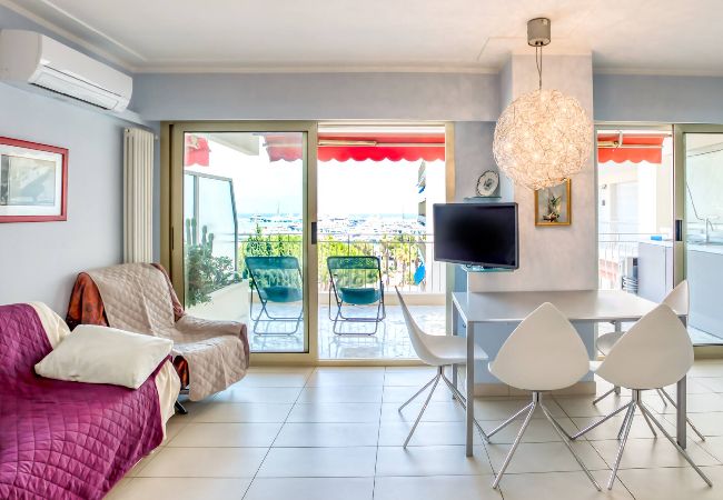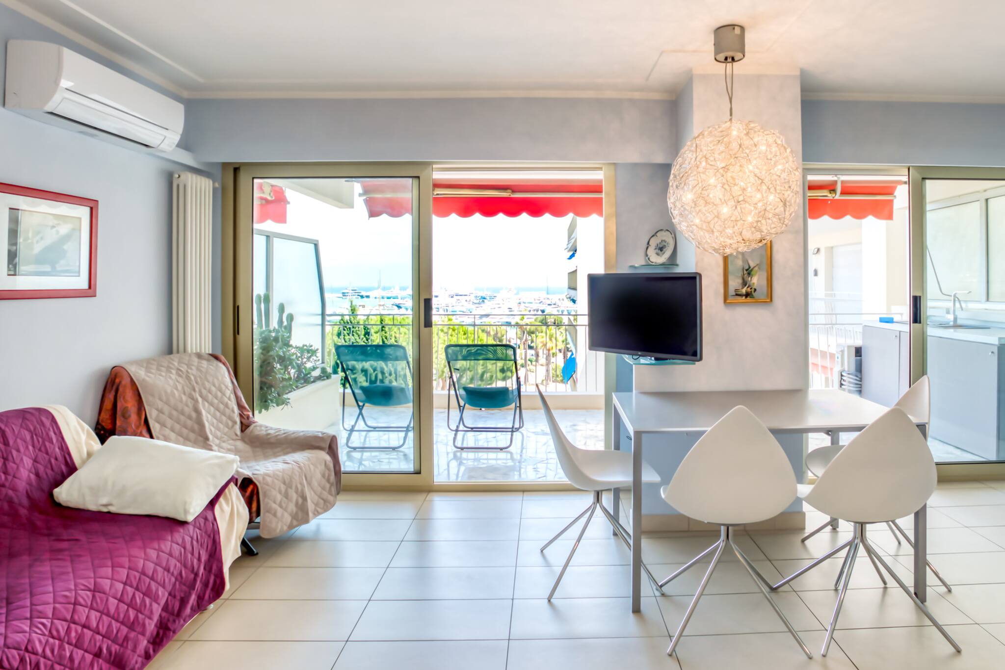 -2 huge bay windows open onto a large and pleasant terrace equipped with a table, 4 chairs and deckchairs to enjoy privileged moments with a breathtaking view of the Vauban port, the Bay of Angels and the Mercantour mountains.