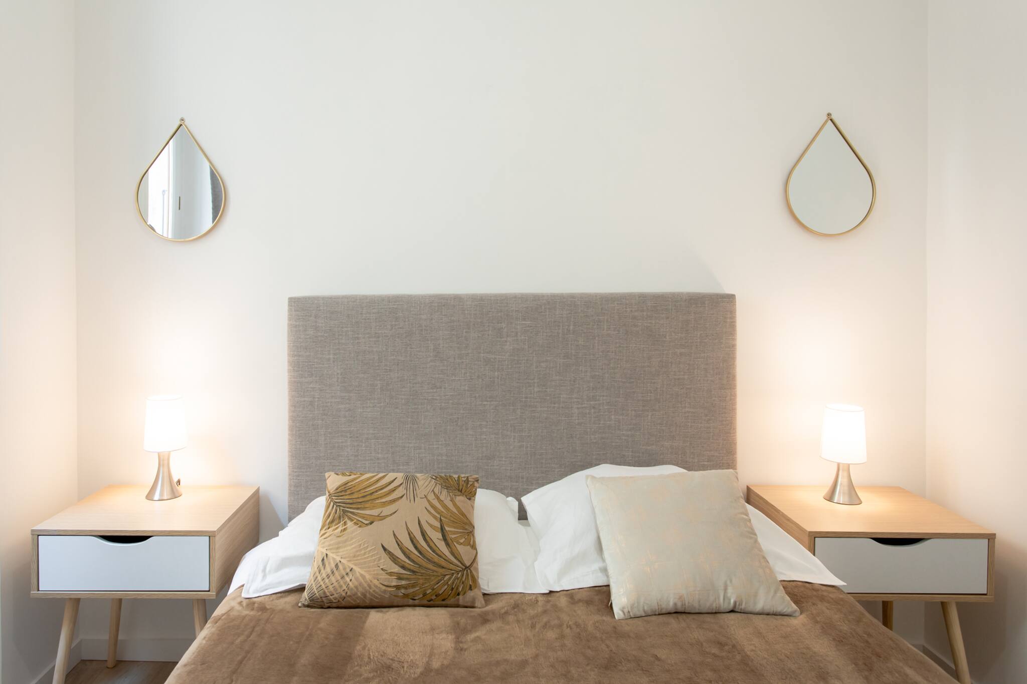. One bedroom without air conditioning with 140cm double bed, curtains, bedside tables and lamps, wardrobe.