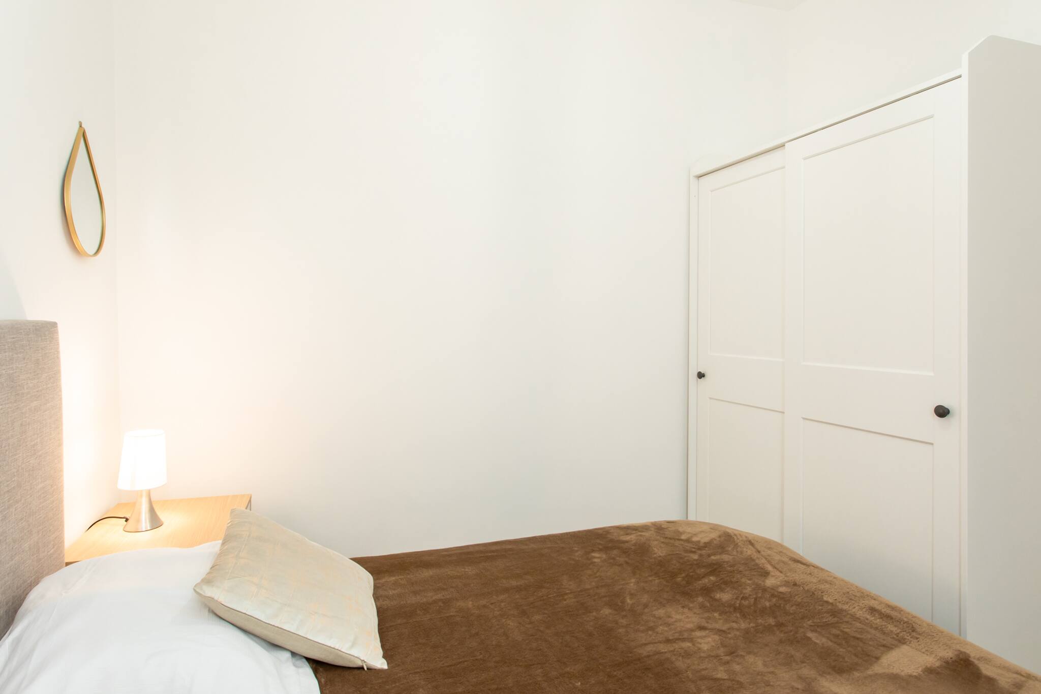 . Bedroom with double bed 140 with bedside lamp, bedside table and storage