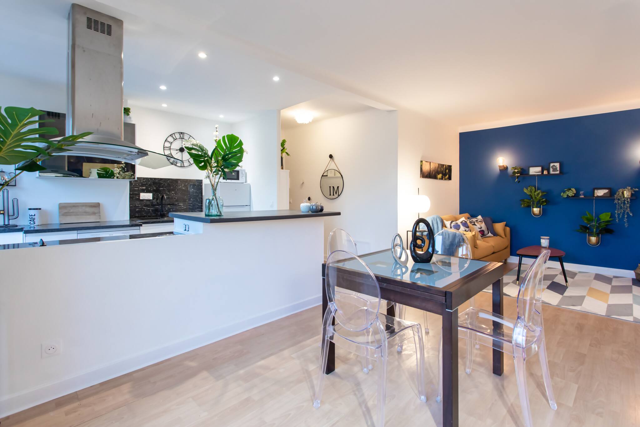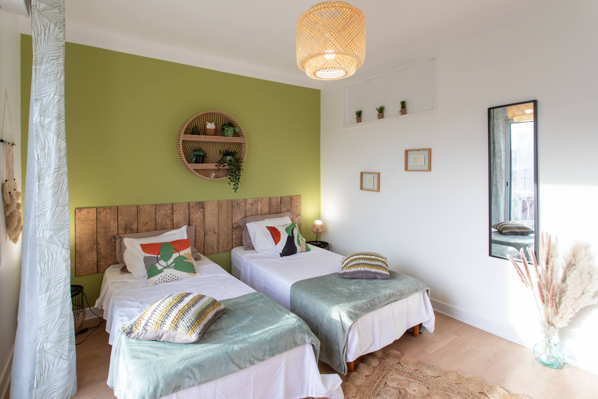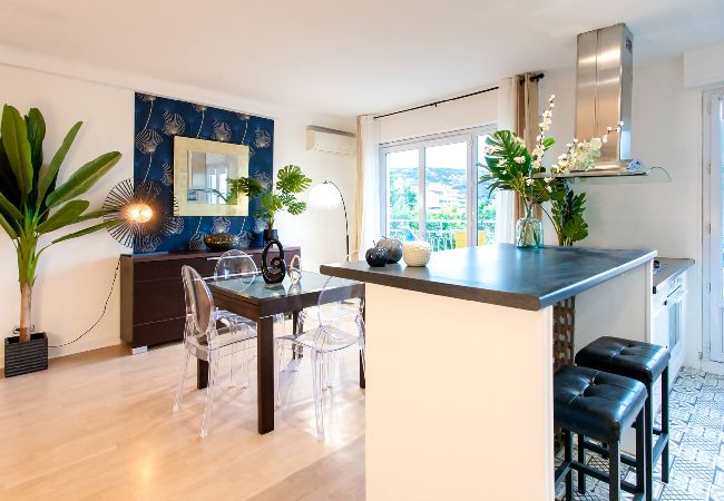 This 52m² 2 Bdr flat is located on the 4th floor with lift. Located in the center of Cannes, it is 4mins walk from the Palais des Festivals & the Croisette. Equipped and decorated with care, it will be ideal for your holidays and congresses: 2 bedrooms, one with a 160 double bed, one with two single beds, reversible AC, terrace with view over the courtyard, WIFI, bathroom, living room, fitted kitchen, washing machine, dishwasher. Ideal for enjoying Cannes and the Riviera like a local.