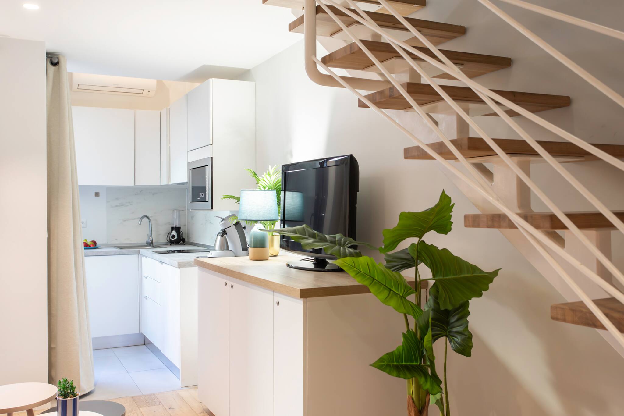 This bright attic studio of 20m² is located on the 5th floor without lift. With beautiful spaces decorated with care, it is equipped with reversible air conditioning, a living room with armchairs and TV, dining area for 2, wardrobe, Nespresso equipped kitchen, toaster kettle, fridge, etc., wifi, shower room, WC separated, sink with sea view! You are in the heart of Old Nice 2 mins walk from the sea & Cours Saleya, near trams. Ideal accommodation to enjoy privileged moments for two.