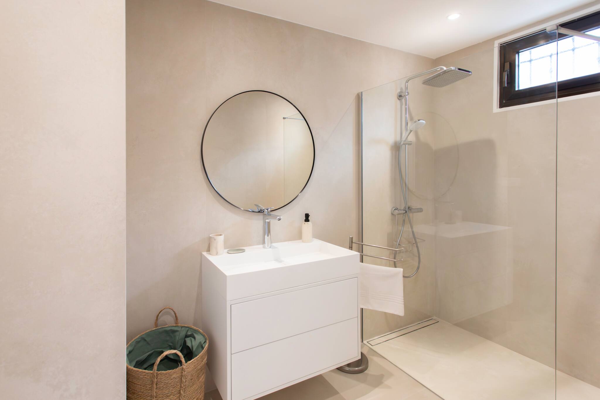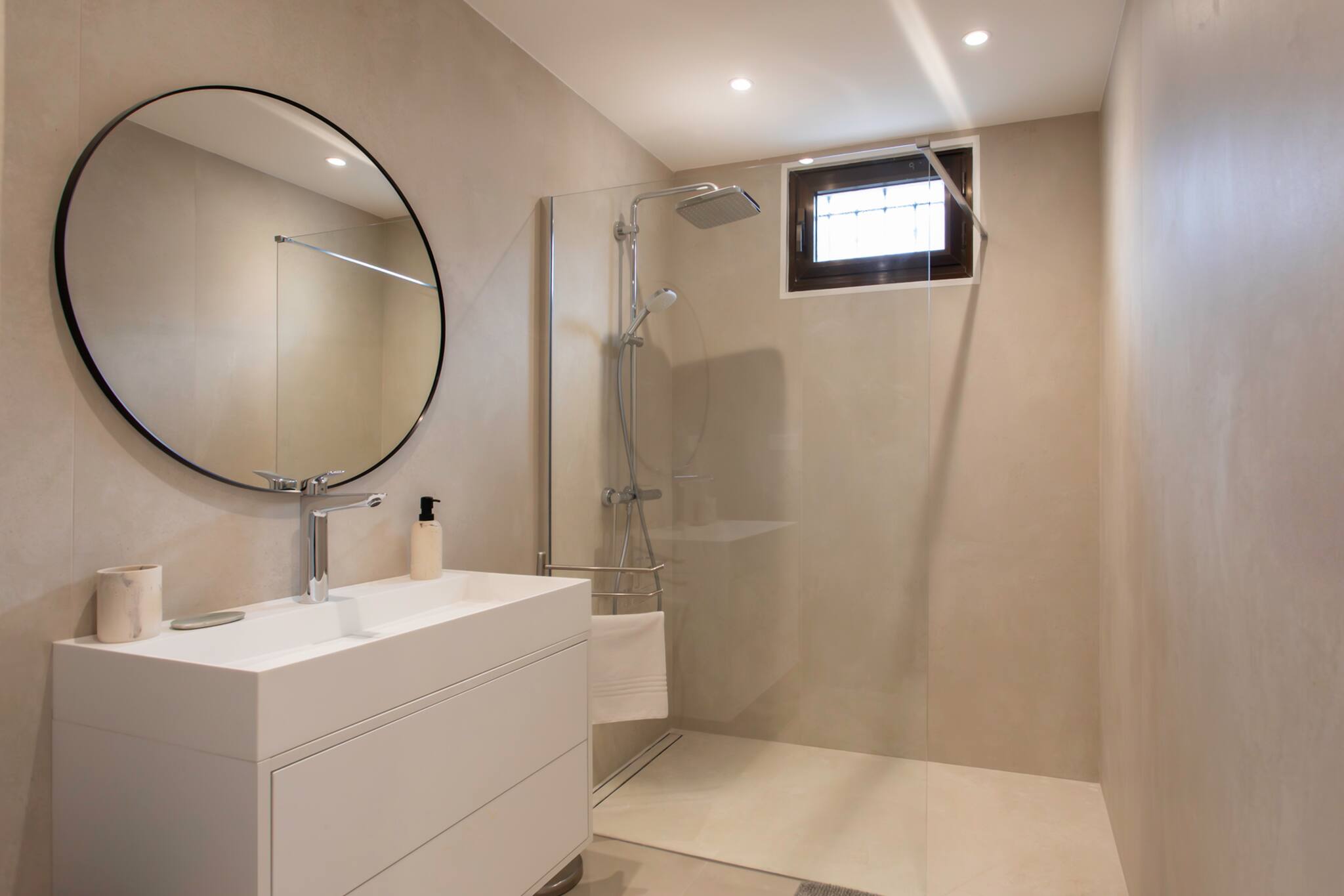 . There is a private shower room equipped with a sink and vanity unit, WC, mirror, hairdryer, towel warmer, and a large walk-in shower
