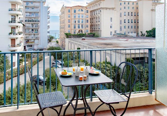 This bright 26m² flat is located on the 3rd floor with elevator. Itscentral location with direct access to the PSea front is perfect: 2mins walk from the beach, 10mins from the Tram & 15mins to Old town, all the main restaurants bars and clubs are in the direct surroundings. Carrefully equipped you will enjoy a 4m² balcony with partial sea view, reversible AC, Wifi, double bed 160cm, lounge area, kitchen, shower room Ideal for enjoying all of Nice & the Riviera walking arround.