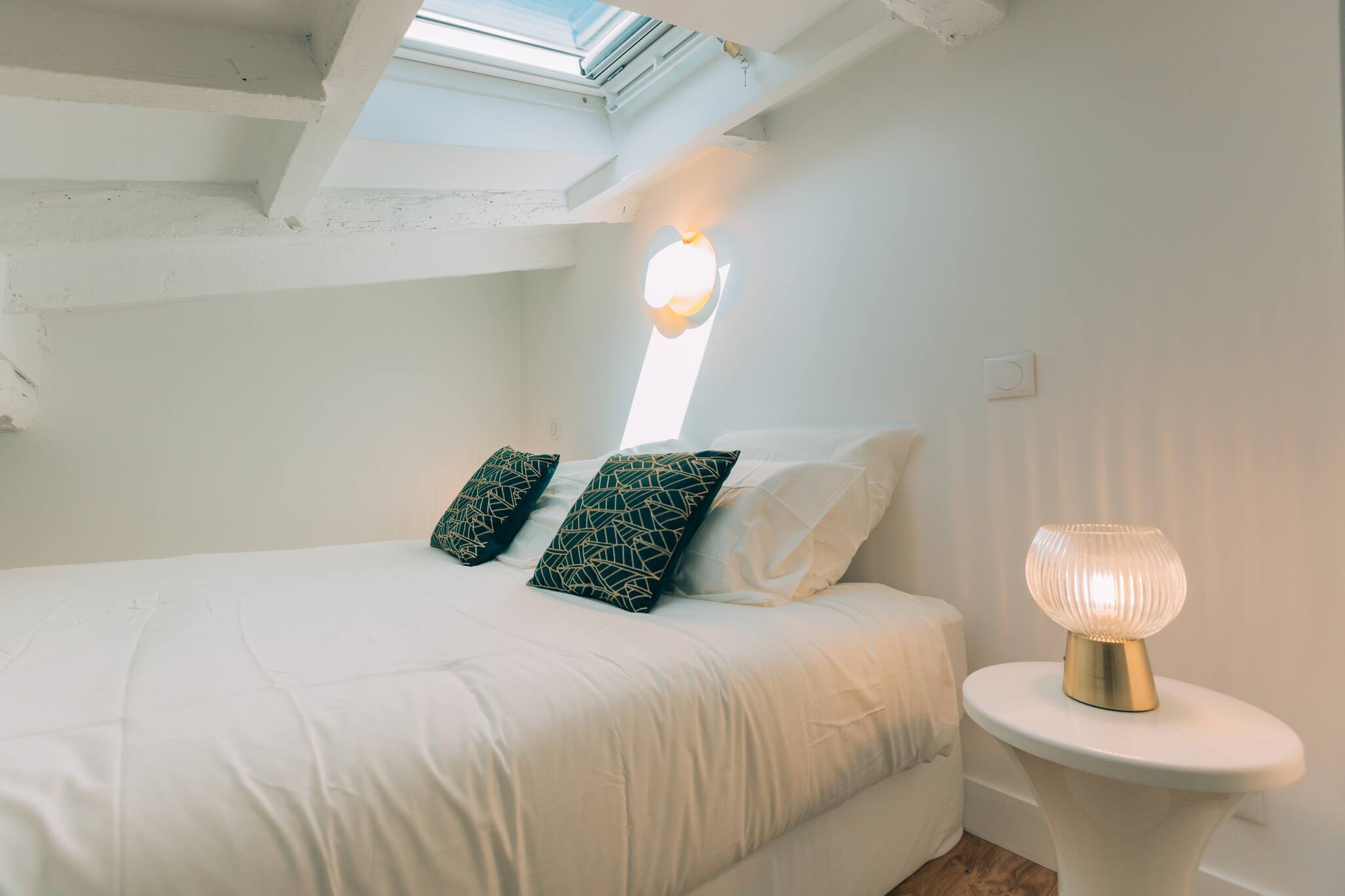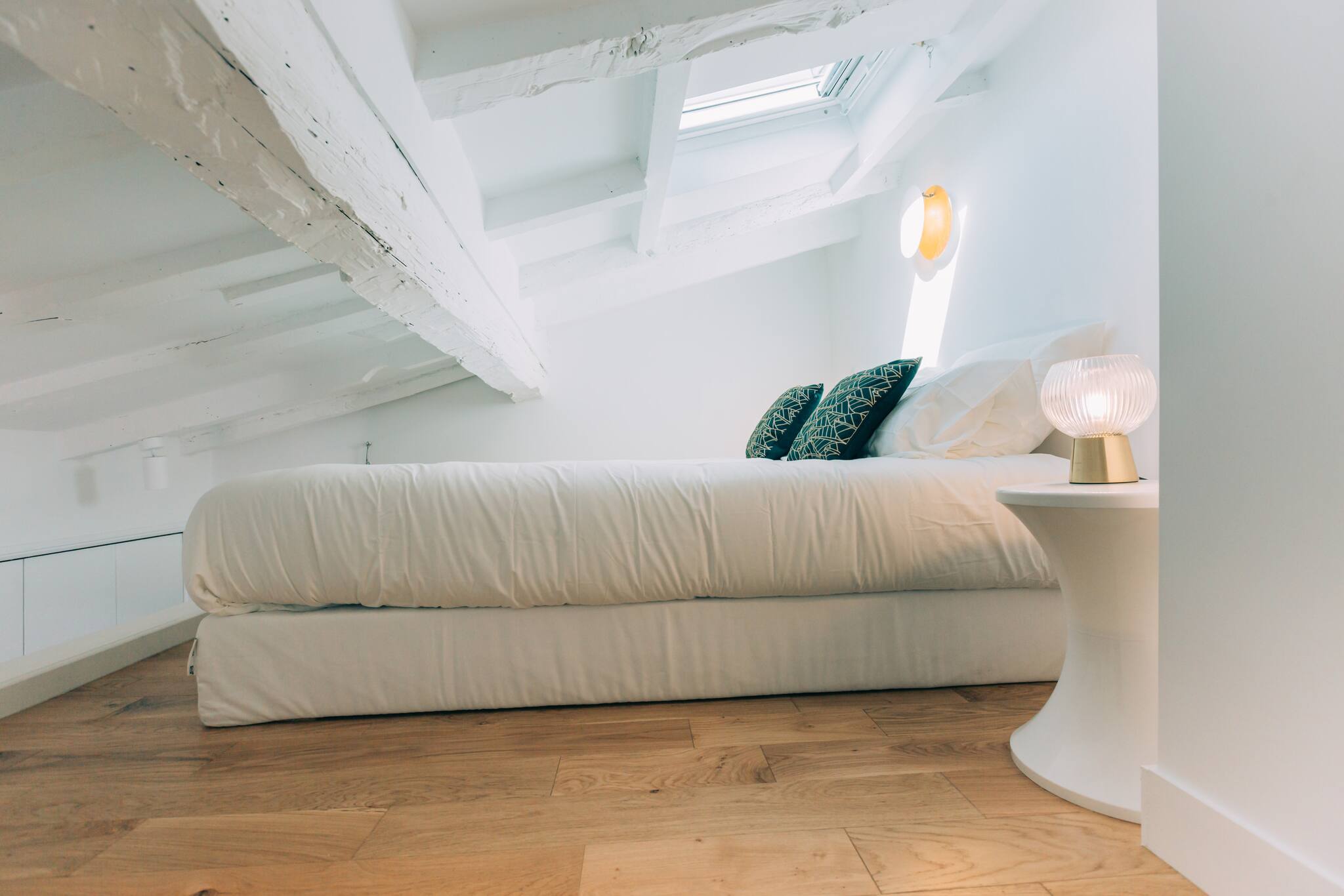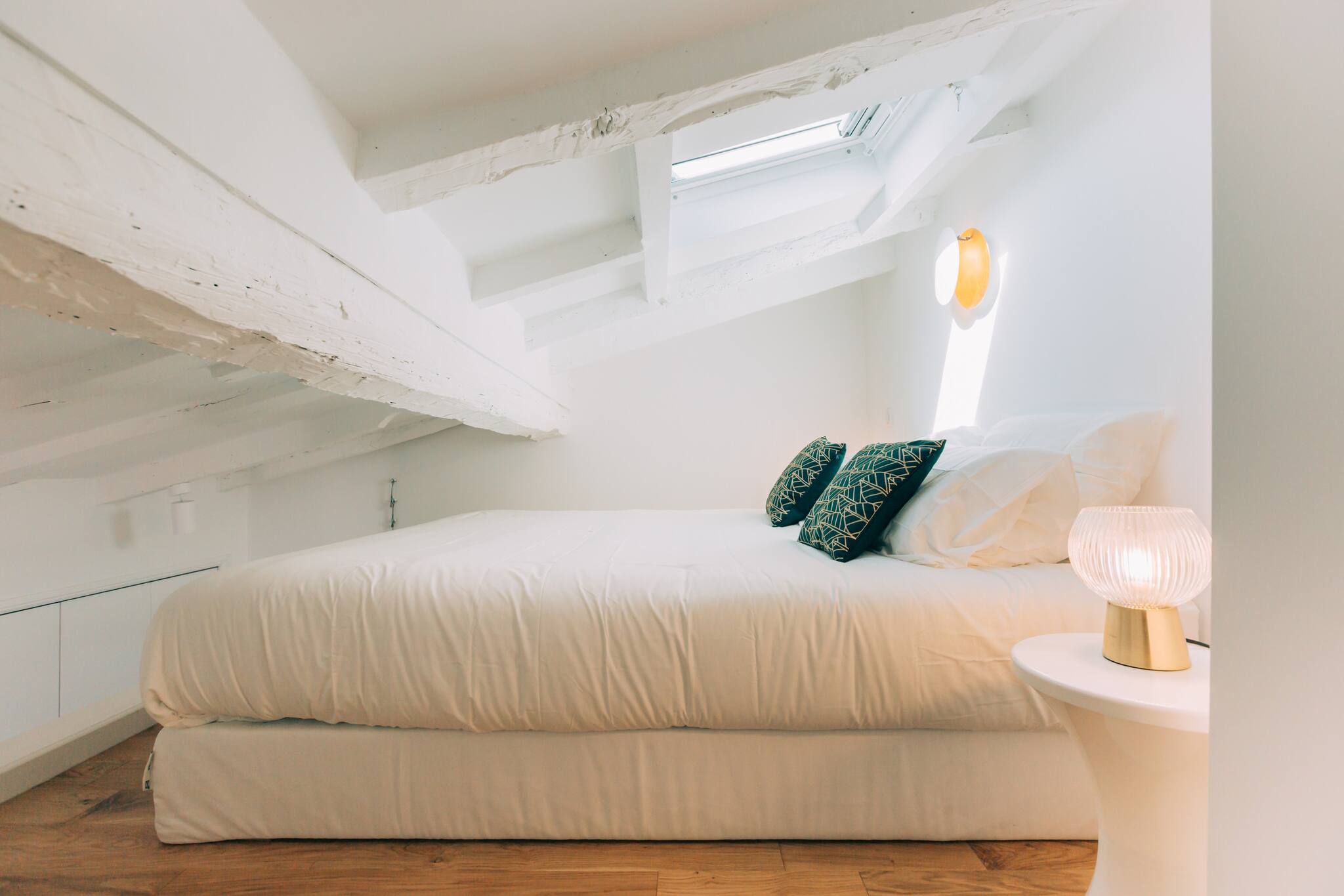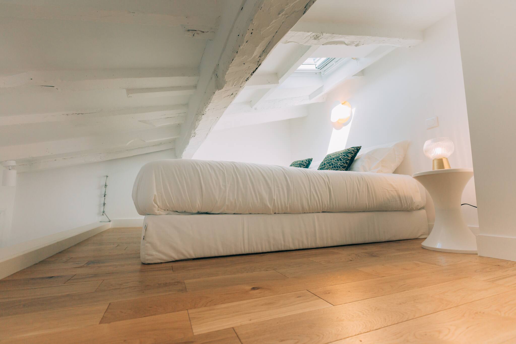 The apartment has 1 elegant and peaceful mezzanine (bedroom area) equipped with a double bed (160 * 200)