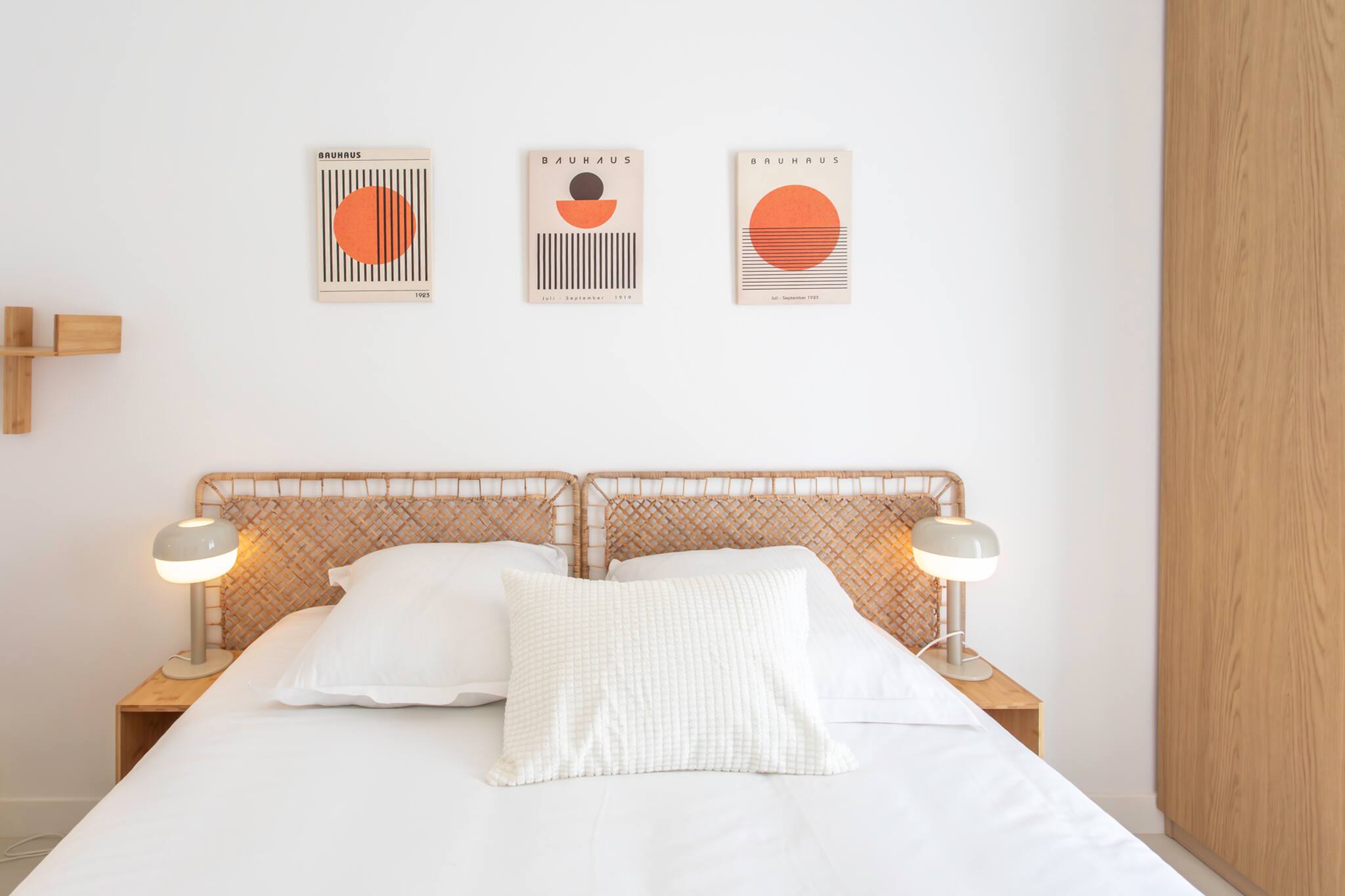 .First air-conditioned bedroom: 160 cm double bed, storage closets, blackout curtains + sheer curtains.