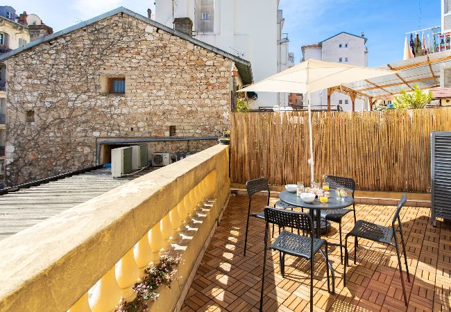 A 52m² renovated apartment, 1st floor without elevator. Its spacious terrace is ideal for meals and aperitifs. The interior has been designed with your confort : tasteful decor, air conditioning, 3 bedrooms, living room, fully equipped kitchen . Less than 5 minutes' walk from the Promenade des Anglais, 3 minutes from the streetcar stop that takes you to the center and airport. Its ideal geolocation will enable you to take full advantage of Nice and its attractions on foot.