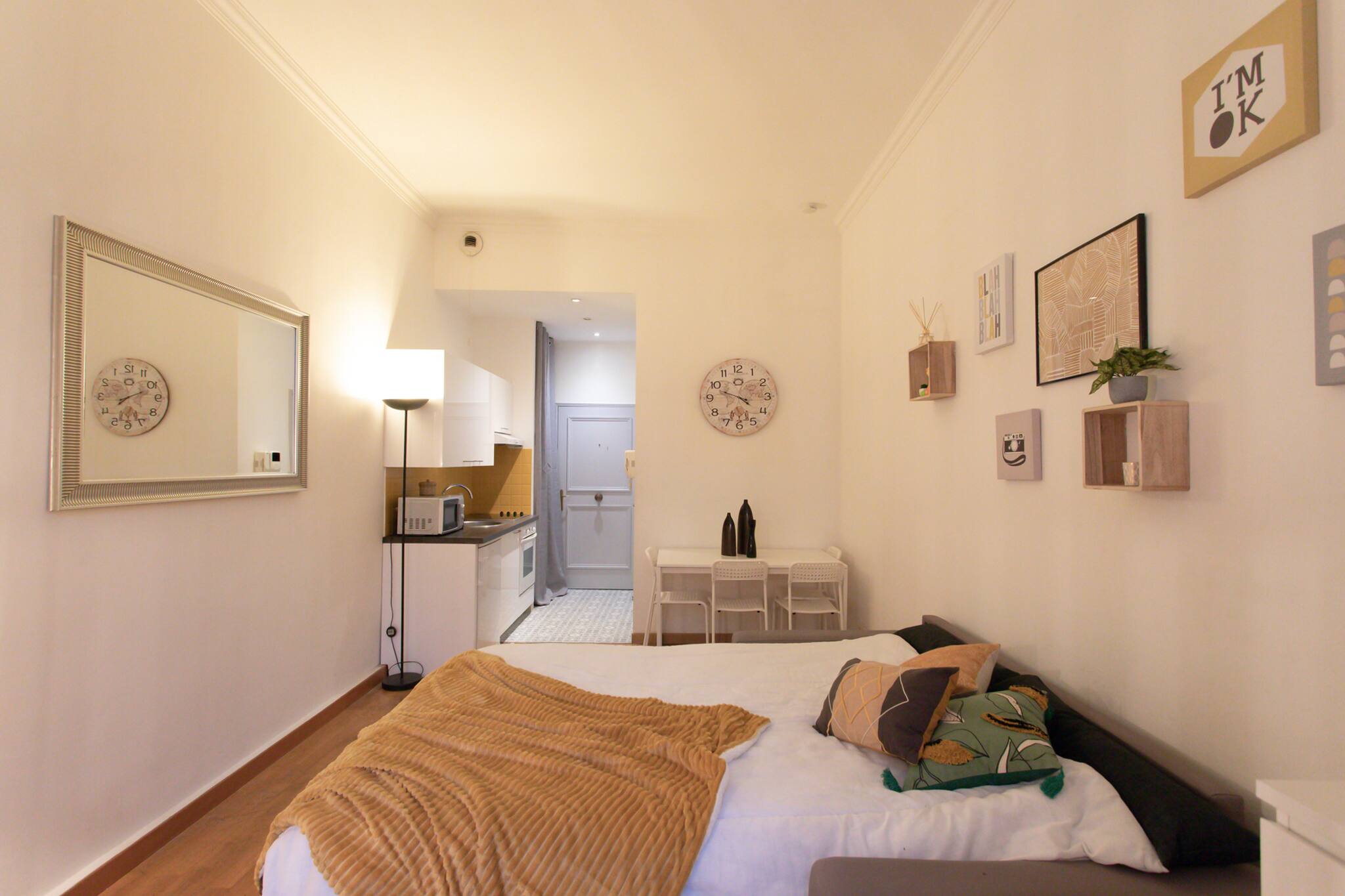 This bright 22m² studio with a contemporary design has all the comforts to enhance your stay in Nice (AC, WIFI, TV, sofa bed, etc). Located on the 1st floor without elevator of a typical building, it offers a view on a quiet courtyard. Directly on the Avenue Jean Médecin, it is just a 4-minute walk from Old Nice and the Promenade des Anglais and the sea. this strategic location will enable you to explore the city entirely on foot. An ideal place for a romantic getaway or a stay with friends !