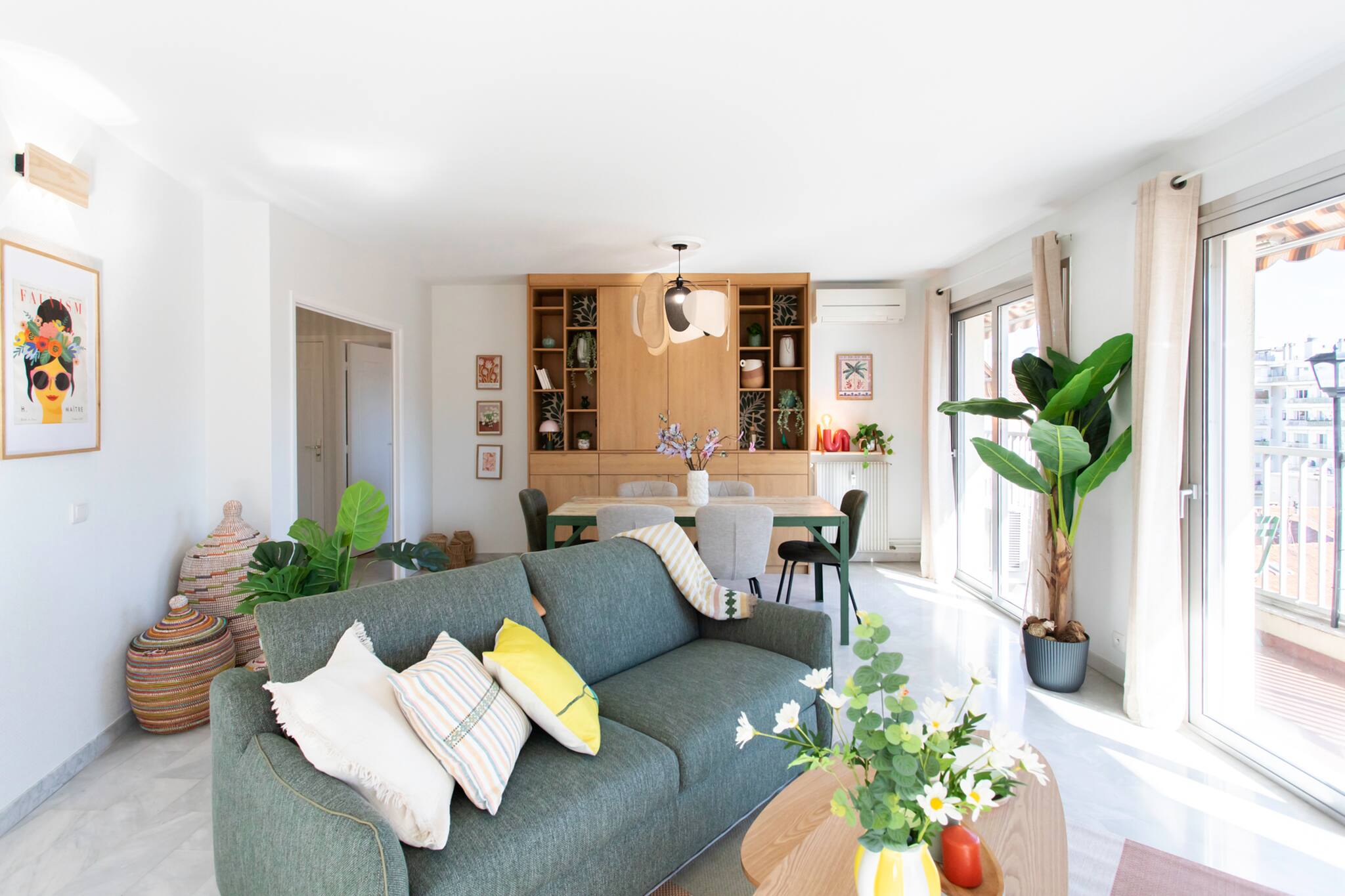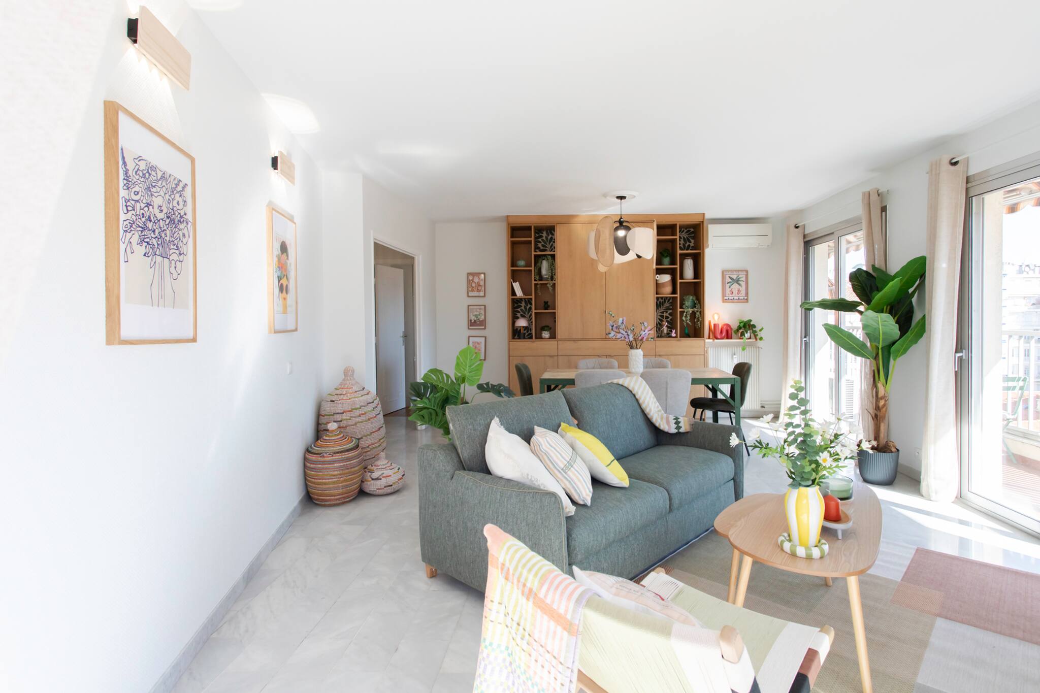Charming 2bedroom flat of 42m² located on the 2nd floor with elevator. It offers all the comforts needed for a family stay: two bedrooms, air conditioning in the living room and main bedroom, a living area, and a fully equipped kitchen. Promenade des Anglais and sea at 5-minute walk away.