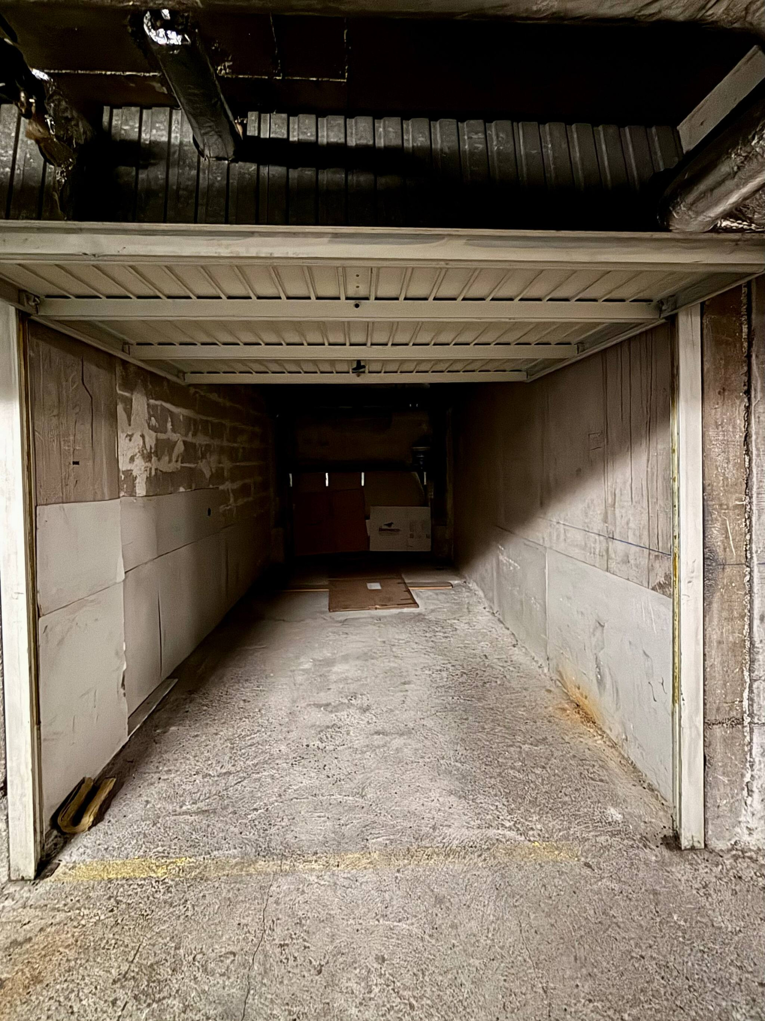 . Garage located on level -1 of residence No. 105. The garage measures 180cm high, 250cm wide, and 430cm deep. It is accessible from 2 Rue des Potiers