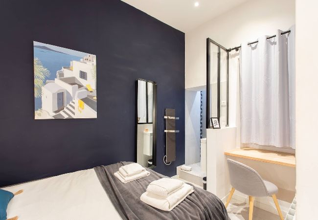 The Orange Suite is located at 3 mins walk from the sea and the Promenade des Anglais. Located on the 4th floor by stairs. It is equipped with all amenities for your stay: large living room with sofa, TV, reversible air conditioning, dining area, wifi, bedroom double bed 160cm + Ac, bedrooms bunk beds 90cm + AC, sea view balcony and dining table, kitchen equipped, shower room with WC and bidet. Ideal accommodation to enjoy the best of Nice with your family.