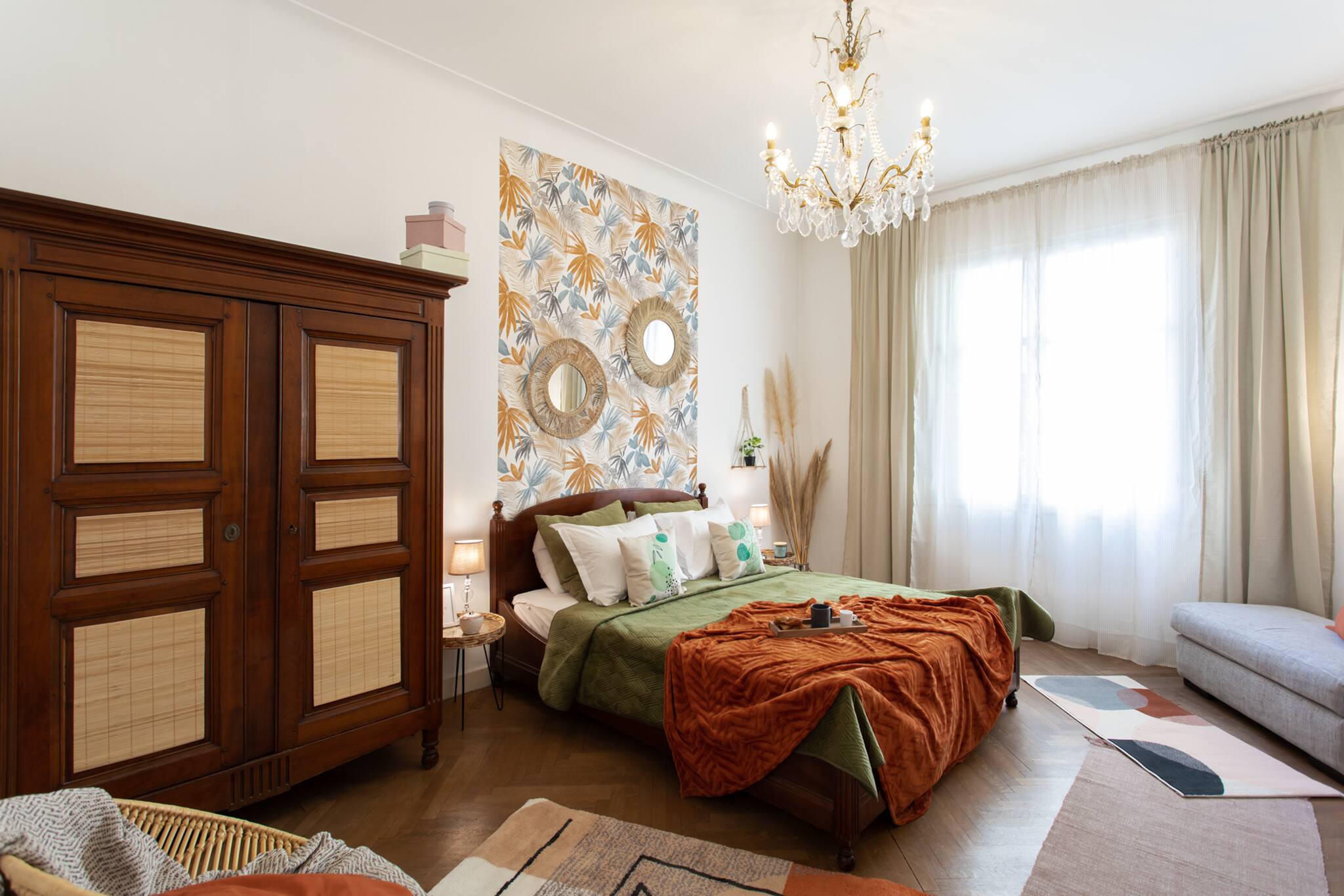 - A bedroom with double bed 160, wardrobe, armchair and bedside lamps with double glazed window giving to the calm.