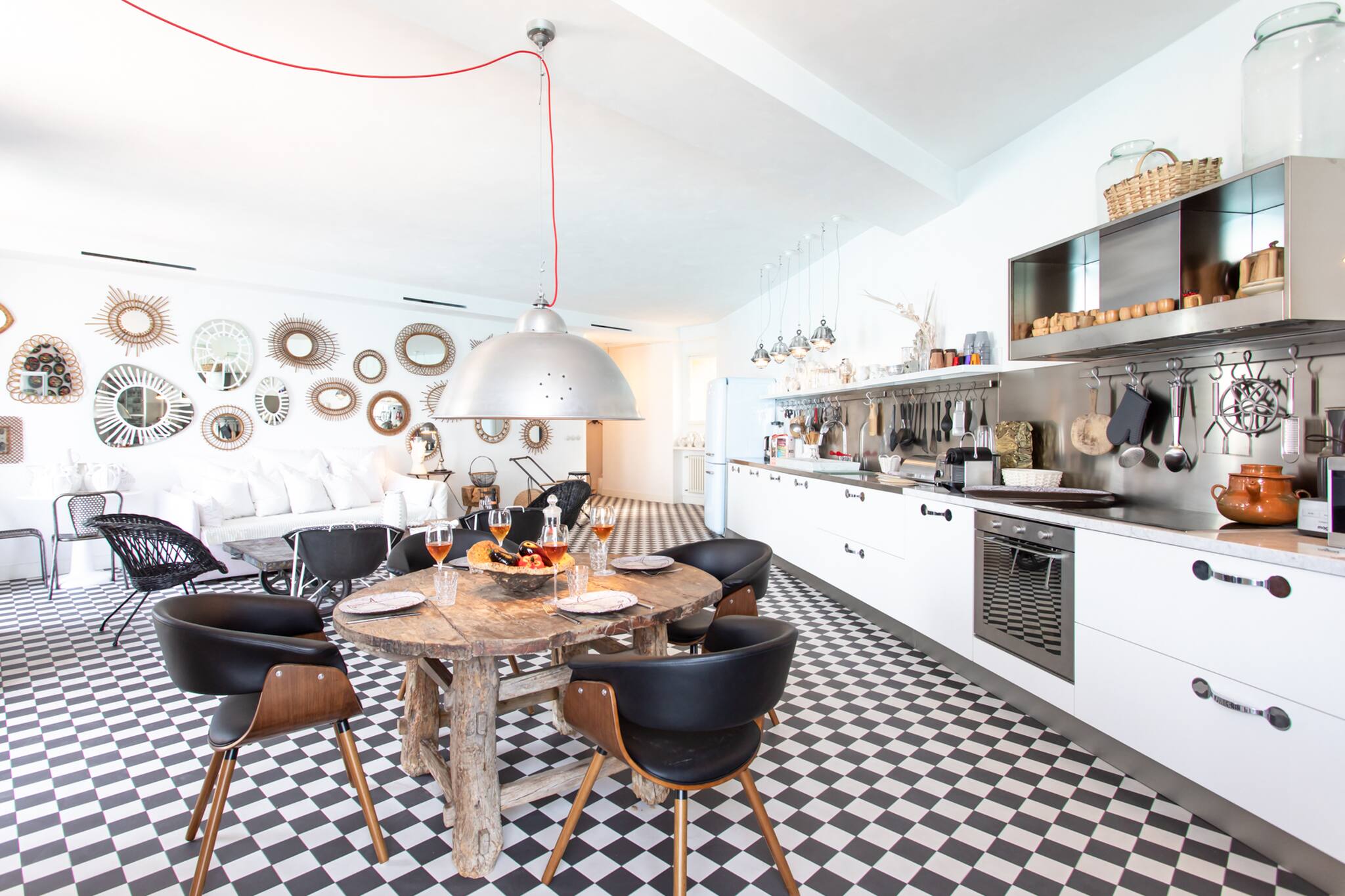 . A professional open-plan kitchen opening onto the living room and fully equipped with fridge, freezer, washing machine, dishwasher, hob, microwave, oven, Nespresso coffee machine, kettle and all you need to cook.