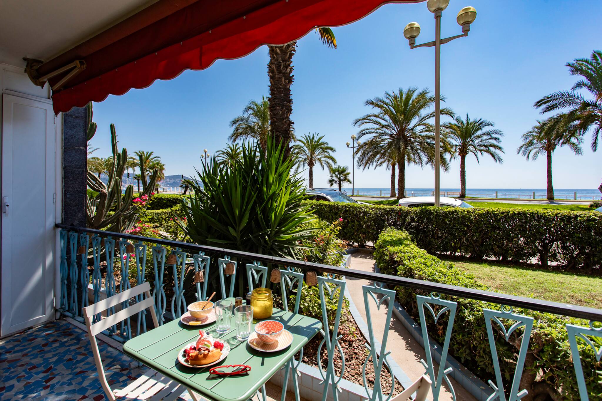 . 1 balcony with sea view, equipped with table and 2 chairs