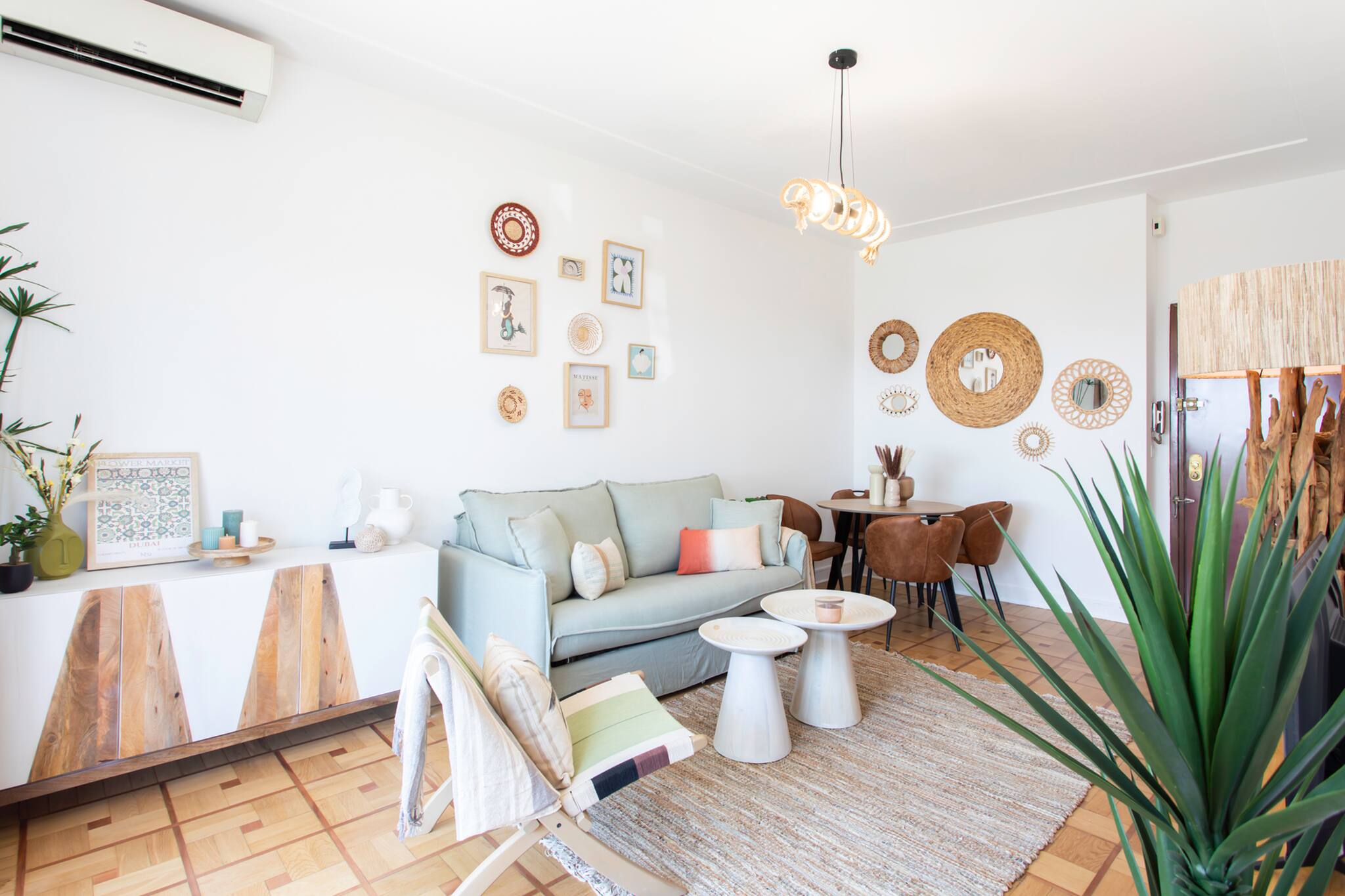 The air-conditioned apartment includes: