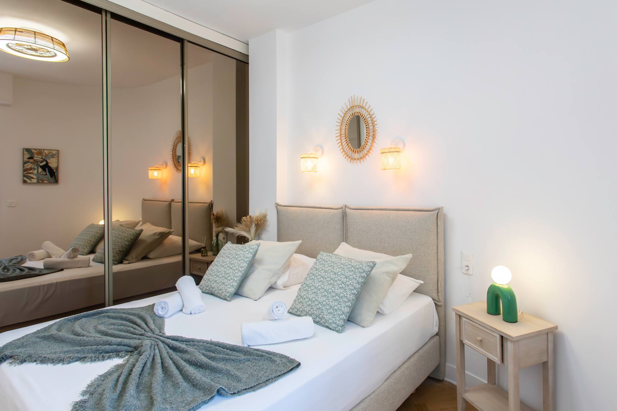 . One double 160-bed bedroom with 2 bedside lamps and 2 bedside tables and storage space