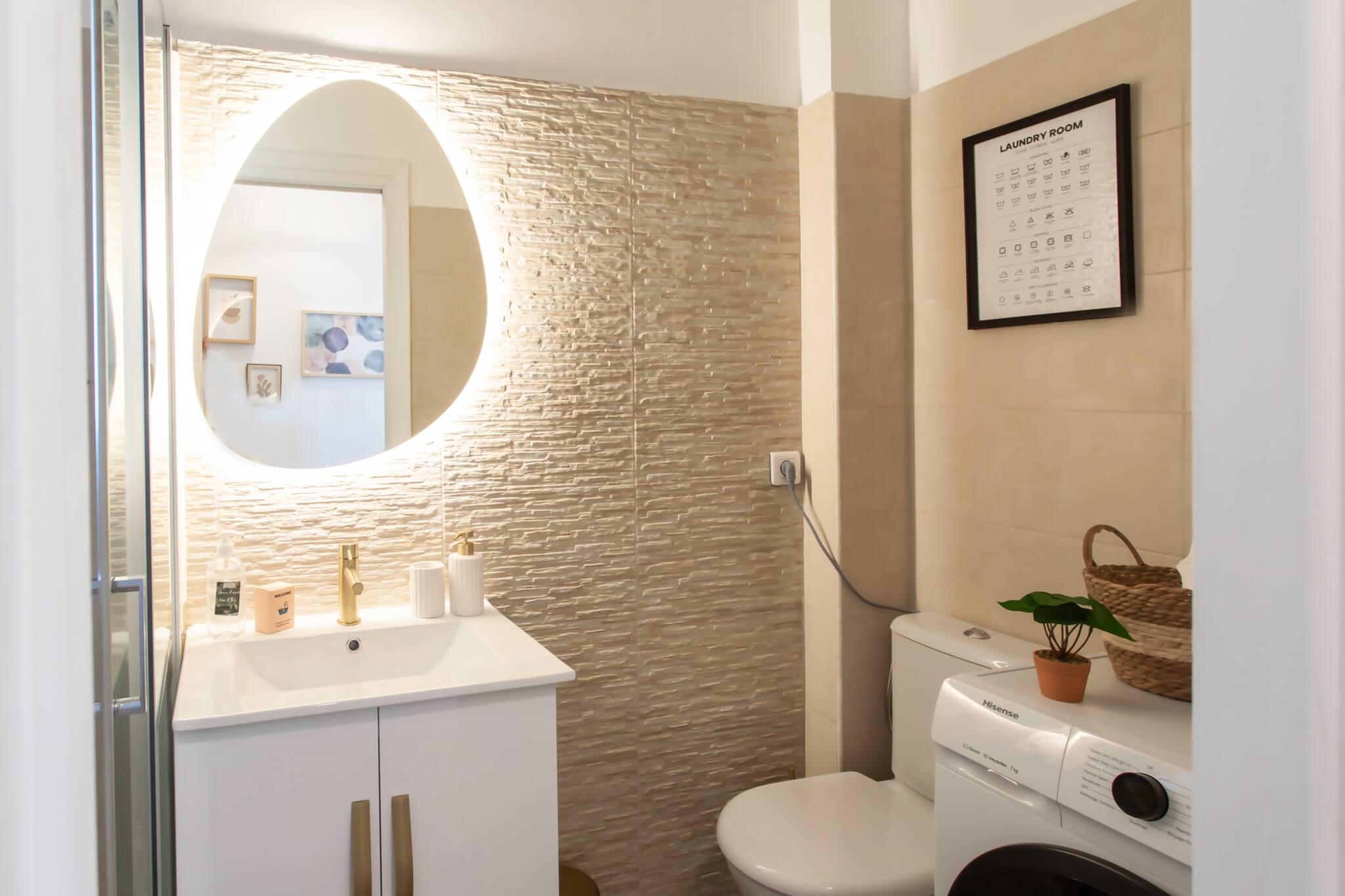 . A fully-equipped kitchen: Nespresso coffee machine, microwave, kettle, toaster, dishwasher, washing machine and a set of cooking utensils.