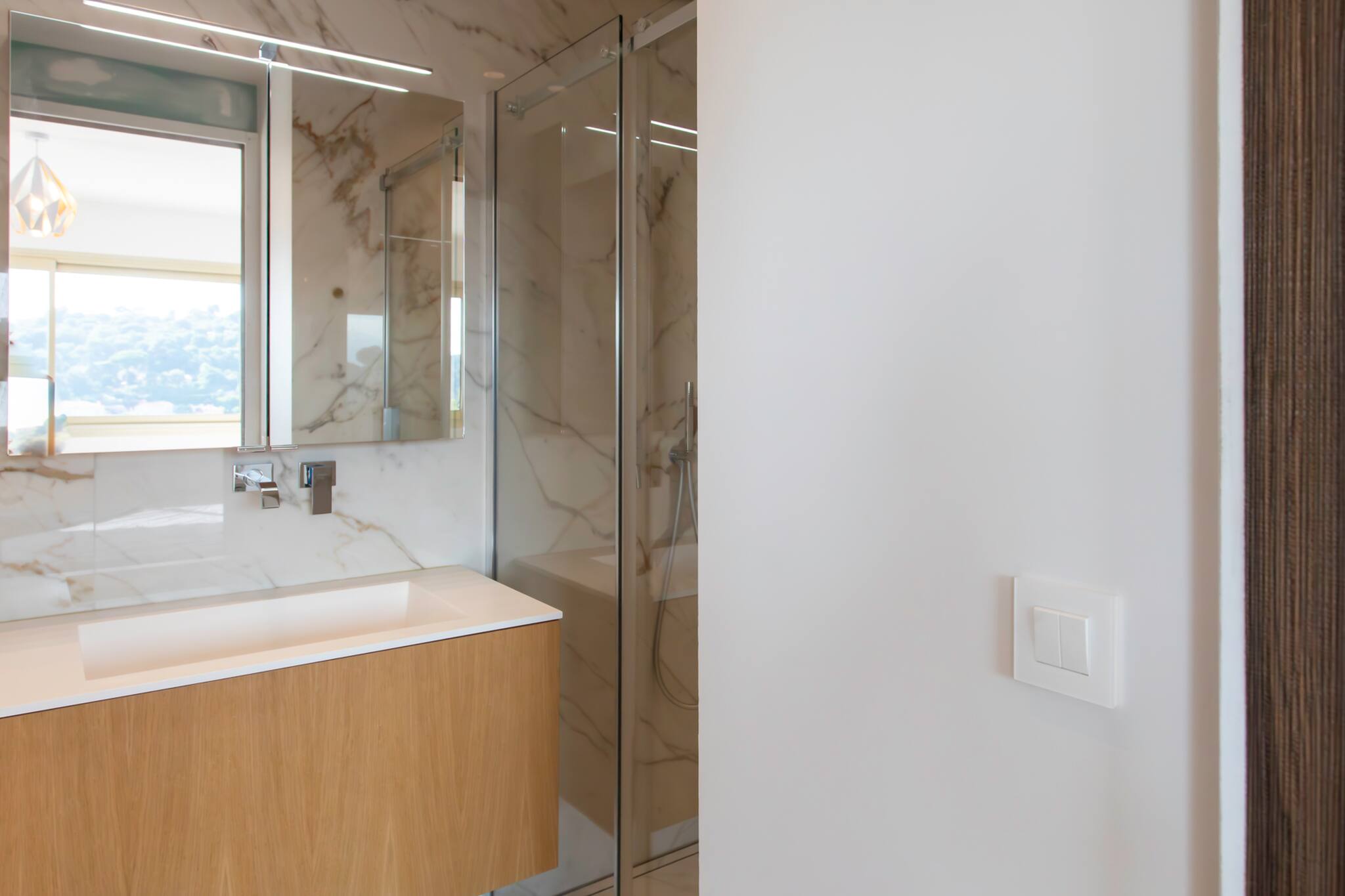 This bright 70 m² 2BDR apartment with a contemporary style combines high-end finishes and designer furniture. Located on the 3rd floor with an elevator, it offers all the comfort you need for your stay: a spacious terrace with sea and mountain views ideal for outdoor lunches and dinners two bath rooms, separate WC, reversible AC, Wi-Fi, a fully equipped kitchen, and private parking (box). Just a 5-minute drive from the Promenade des Anglais, it’s ideal for a stay with family or friends.