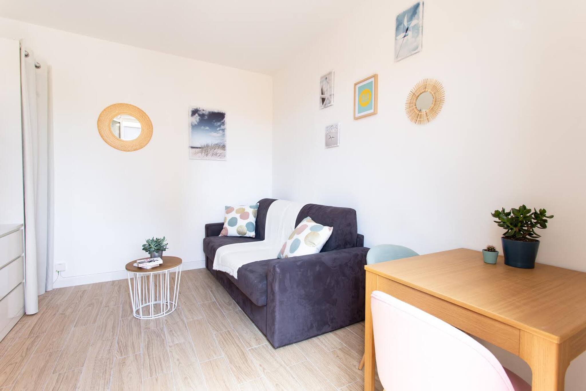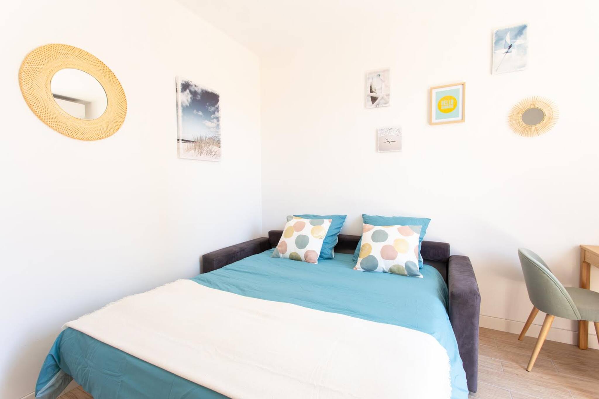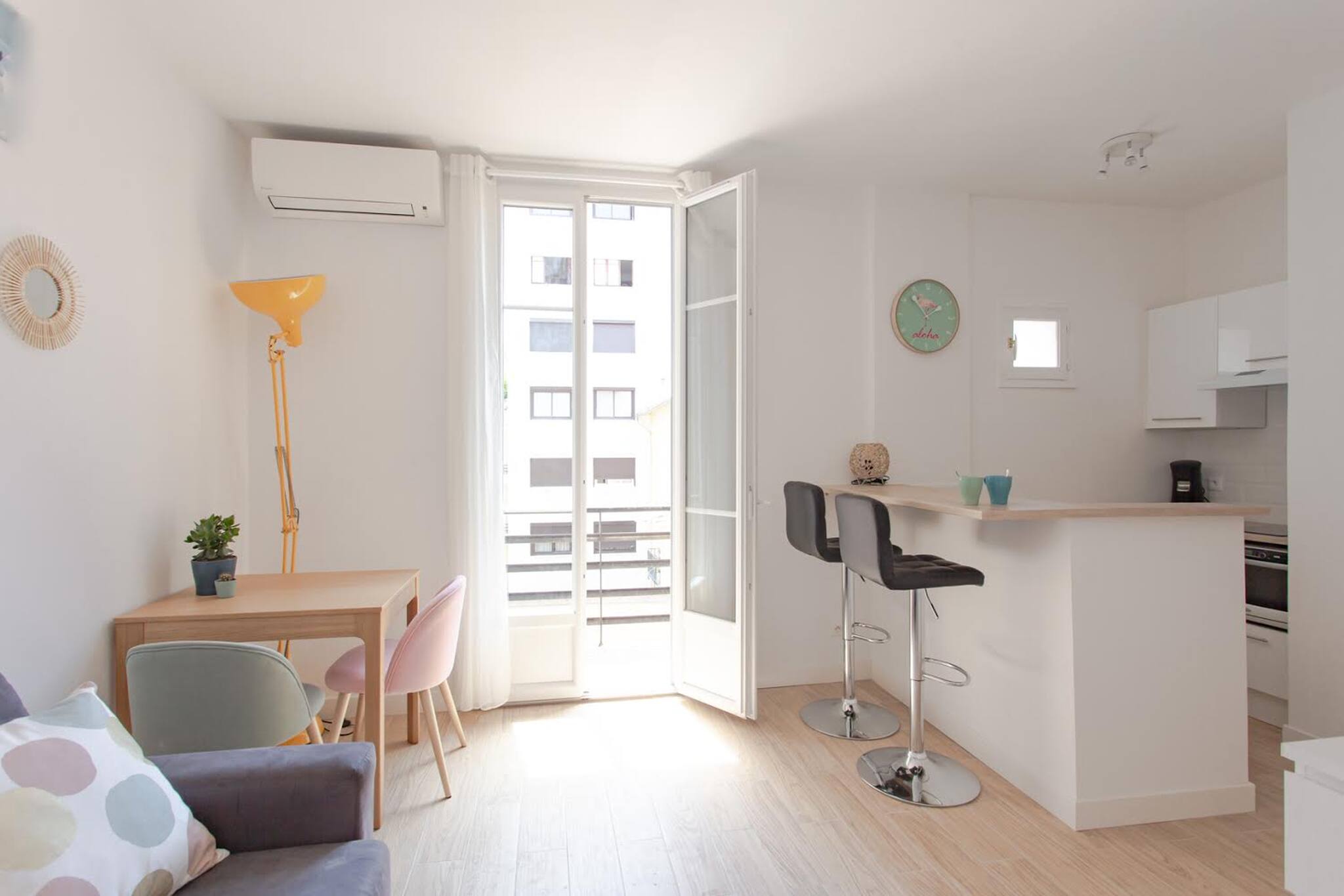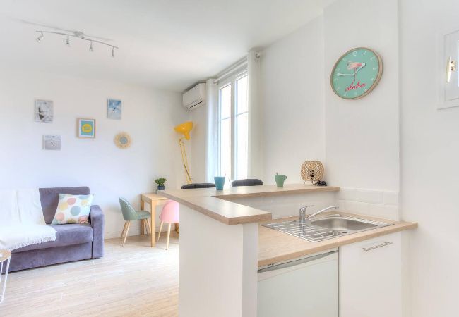 This bright 22m² studio with a contemporary design has all the comforts to enhance your stay in Nice (AC, WIFI, TV, sofa bed, etc). Located on the 1st floor without elevator of a typical building, it offers a view on a quiet courtyard. Directly on the Avenue Jean Médecin, it is just a 4-minute walk from Old Nice and the Promenade des Anglais and the sea. this strategic location will enable you to explore the city entirely on foot. An ideal place for a romantic getaway or a stay with friends !