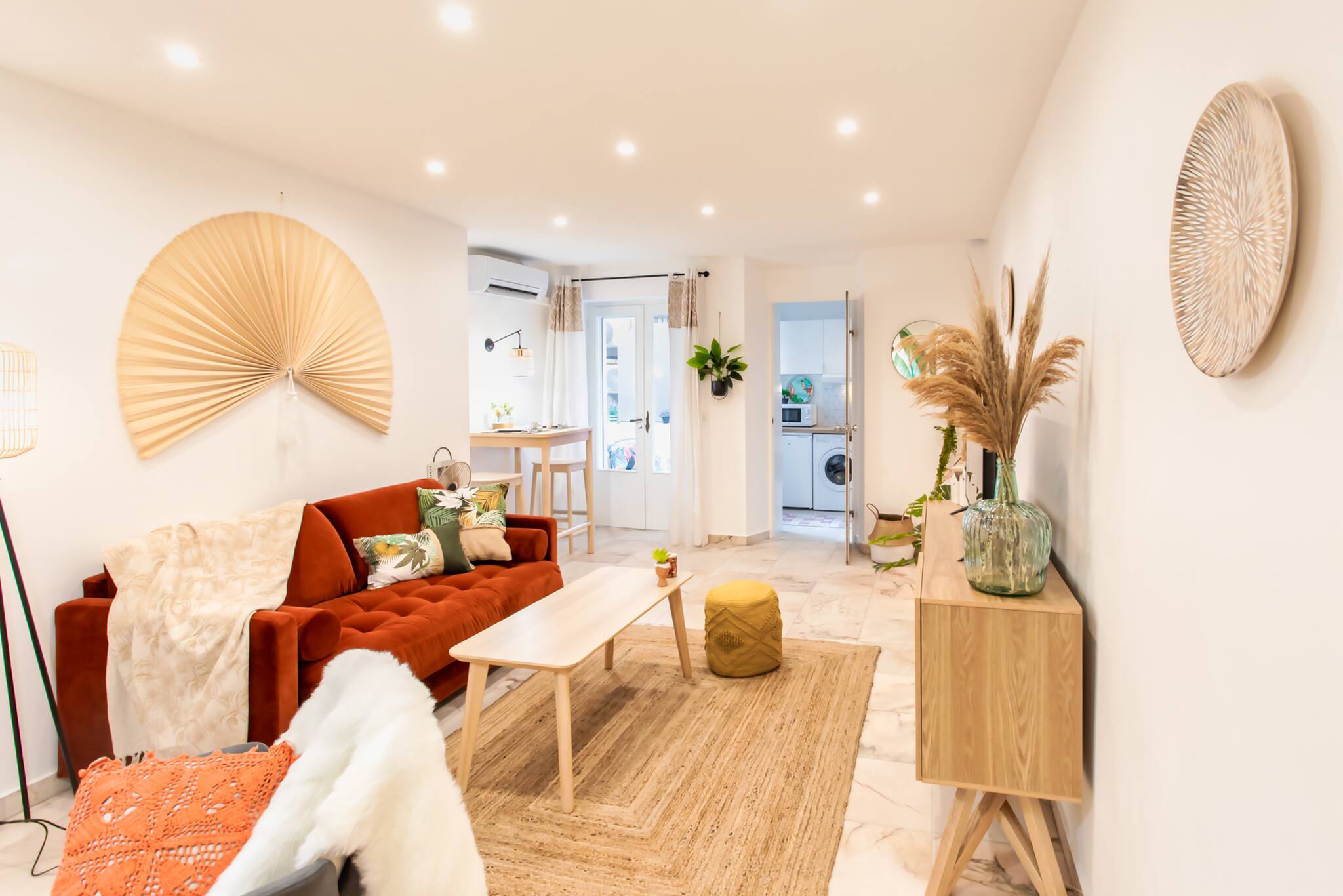 This large 30m² studio is located on the 1st floor without lift of a building in right in the center of Cannes. Located 2 minutes walk from the Palais des Festivals and the Croisette, it is a perfect place to enjoy congresses, the sea & Cannes night life. Provided with all amenities for your stay: reversible air conditioning, wifi, bedroom area with sofa bed 140, balcony overlooking courtyard with dining area, working desk, bathroom WC, equipped kitchen, washing machine, etc.