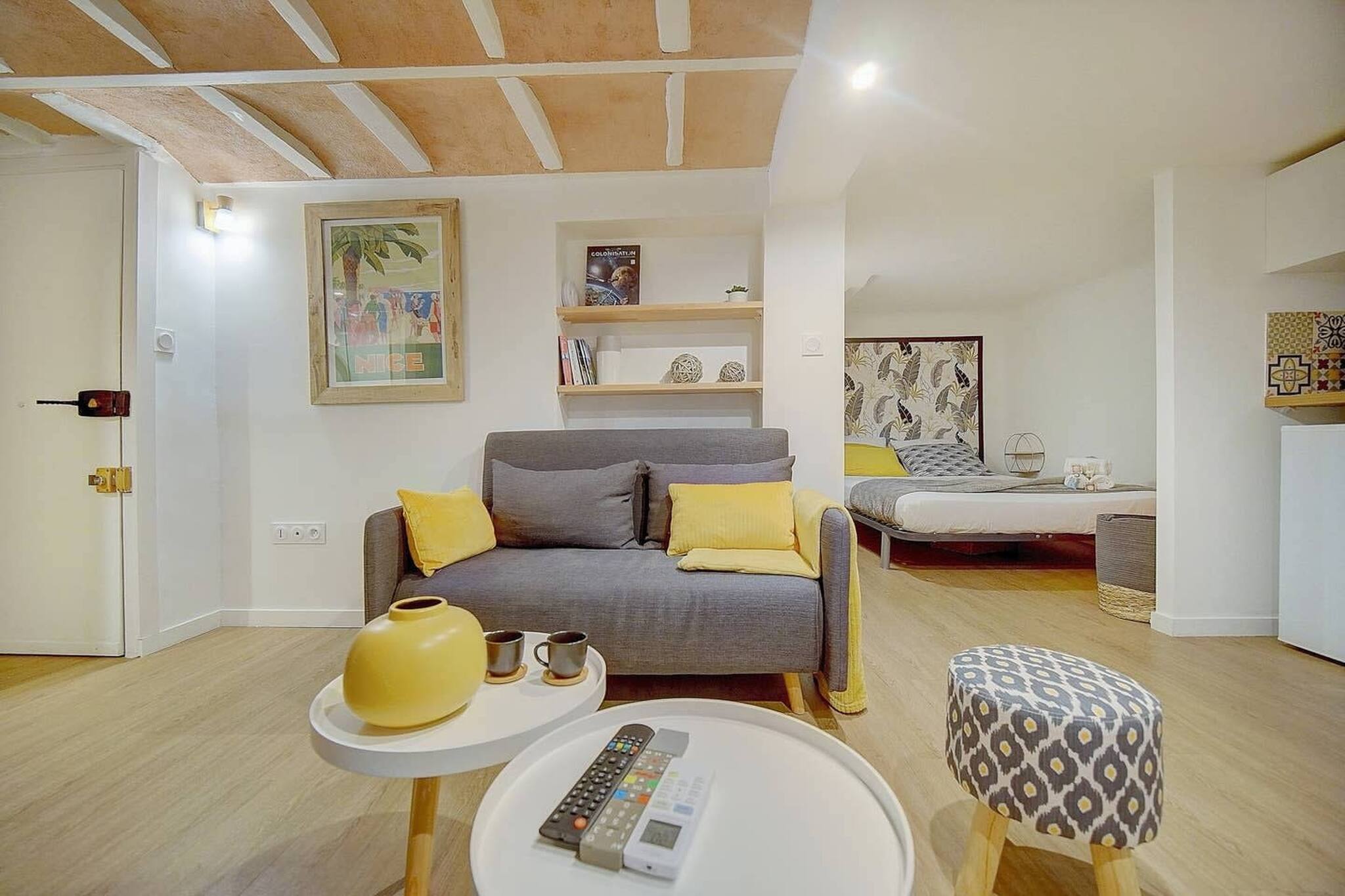 This comfy, air-conditioned studio of 25m² of contemporary style is located on the first floor without elevator. Completely renovated and atypical, it has a ceiling height of 1.85m and has all the comforts for your stay in Nice. Located in the heart of the Old Town and a 2-minute walk from the sea, it will allow you to explore Old Nice as well as the nightlife punctuated by the neighborhood. For a romantic getaway or with friends, it's ideal.