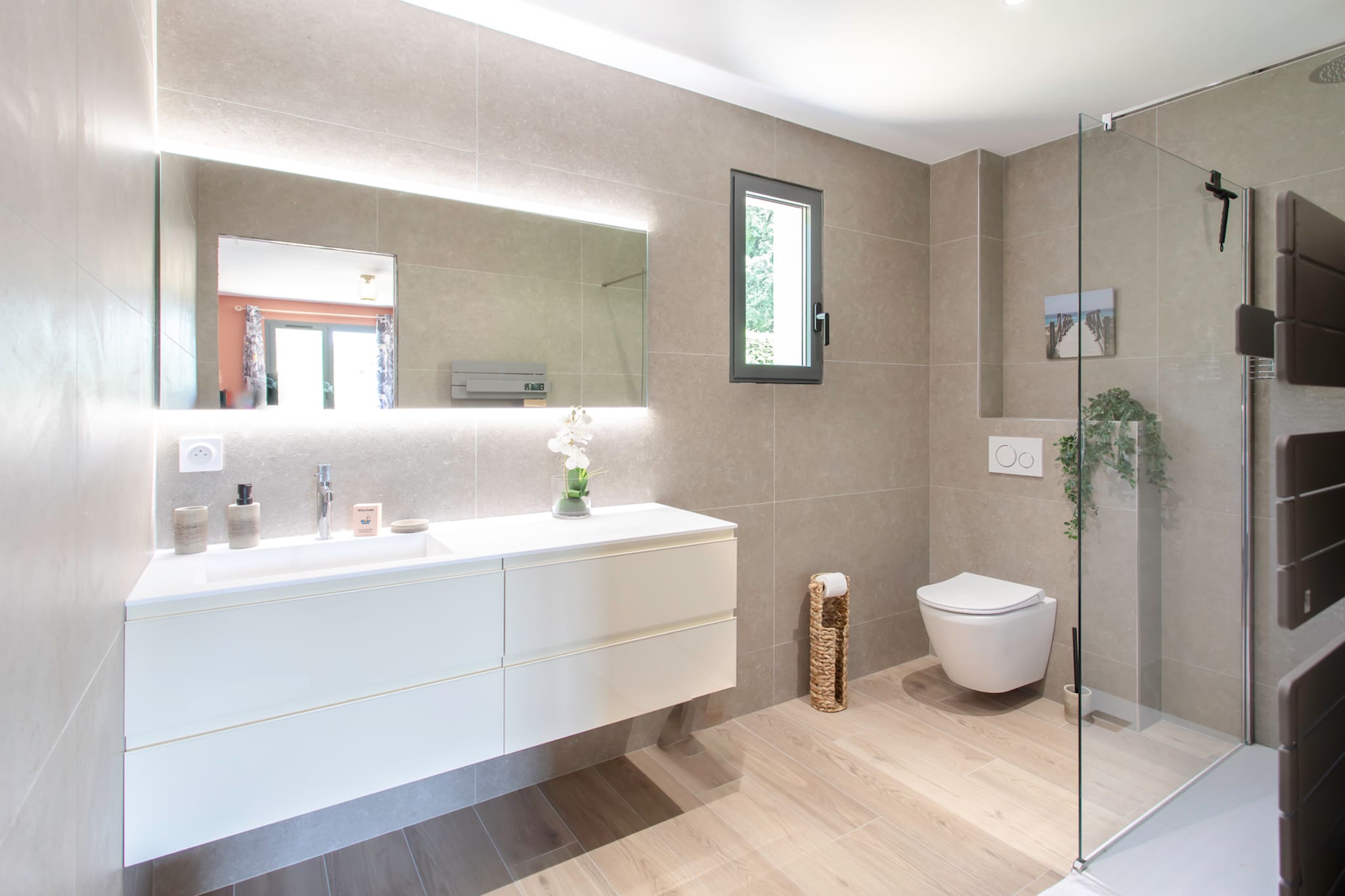 This modern & elegant 200m² villa is nestled at the foot of Saint Paul de Vence. On 2 levels it will comfortably accommodate 8 people. Equipped with all amenties for your stay: Swimming pool, gas BBQ, deckchairs, reversible air conditioning, Starlink Wifi, 2 master suites & 2 bedrooms, 3 bathrooms, elegant kitchen and living room, office, parking for 4 vehicles, etc. Ideal for a stay with family or friends, 10 minutes from the village & the highway and 15 minutes from Grand Large beach.