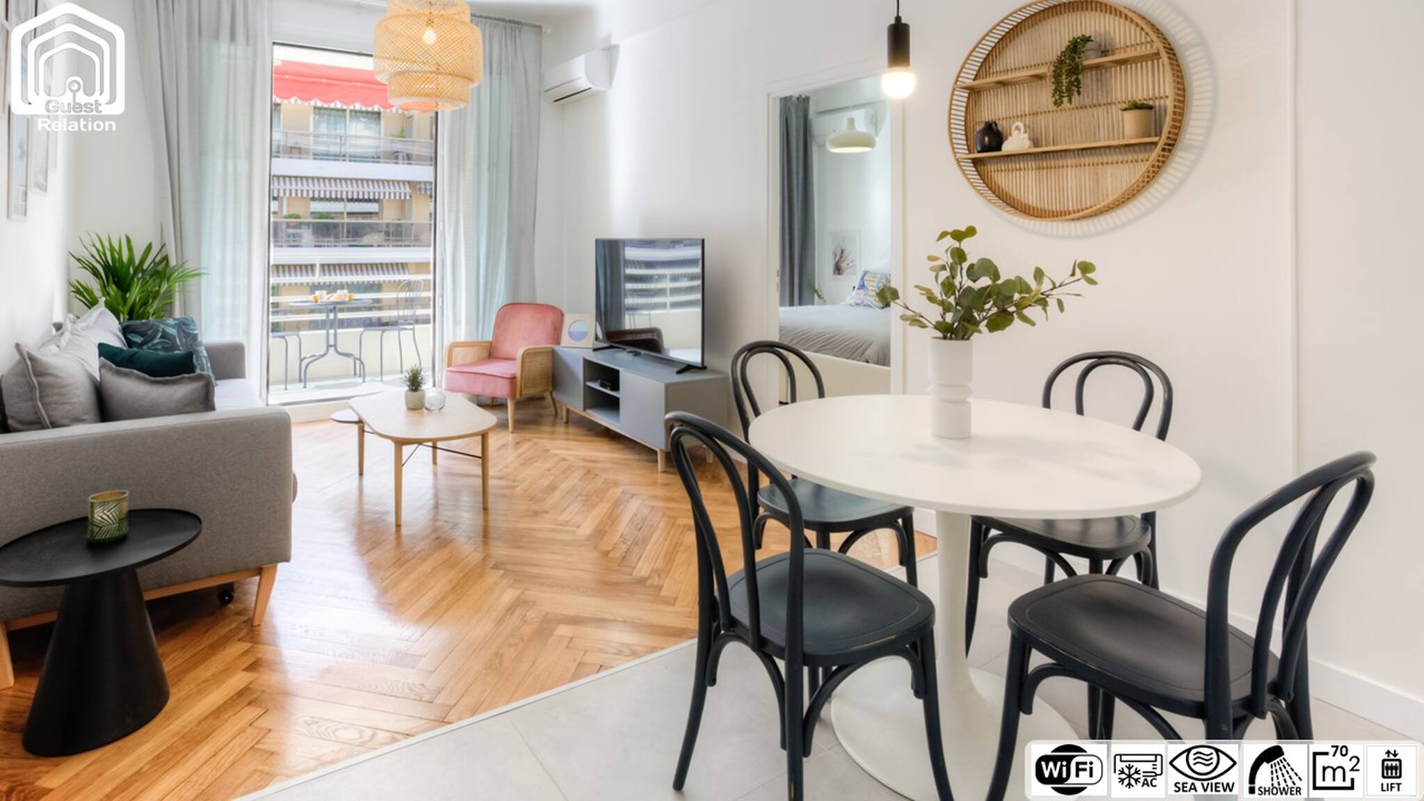 L'appartamento a Nice ha 2 camera(e) da letto e capacità per 4 persone. Alloggio di 70 m² arredato con gusto e molto luminoso. Si trova in una zona tranquilla zone e vicino al mare.Ha ascensore, giardino arredato, lavatrice, ferro da stiro, asciugacapelli, riscaldamento centralizzato, aria condizionata, 1 Televisore, tv satellitare.La cucina indipendente, è attrezzata con frigorifero, microonde, forno, congelatore, stoviglie/posate, utensili da cucina, caffettiera, tostapane, bollitore e fornello.