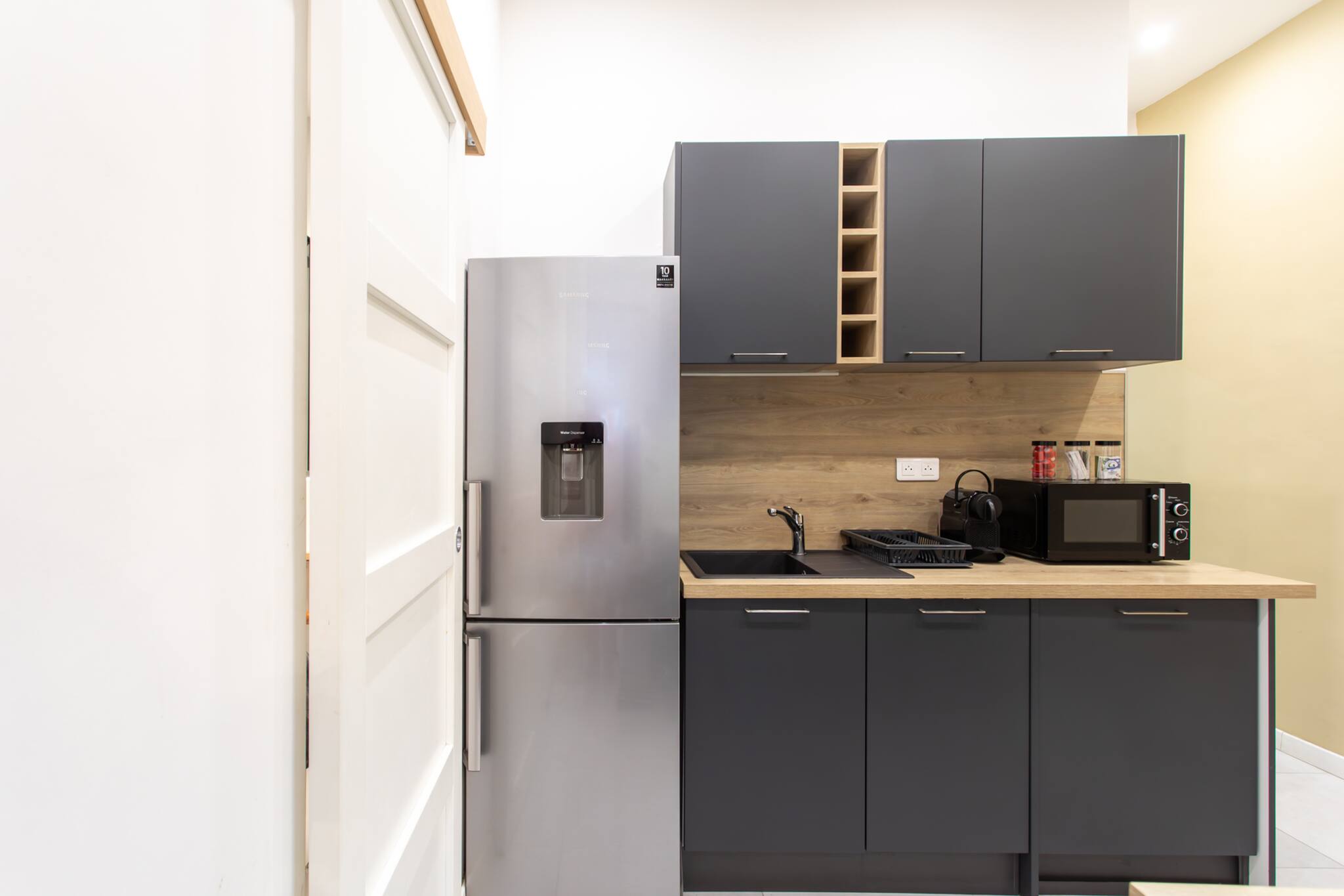 La cucina, è attrezzata con frigorifero, microonde, forno, congelatore, lavastoviglie, stoviglie/posate, utensili da cucina, caffettiera, tostapane e bollitore.