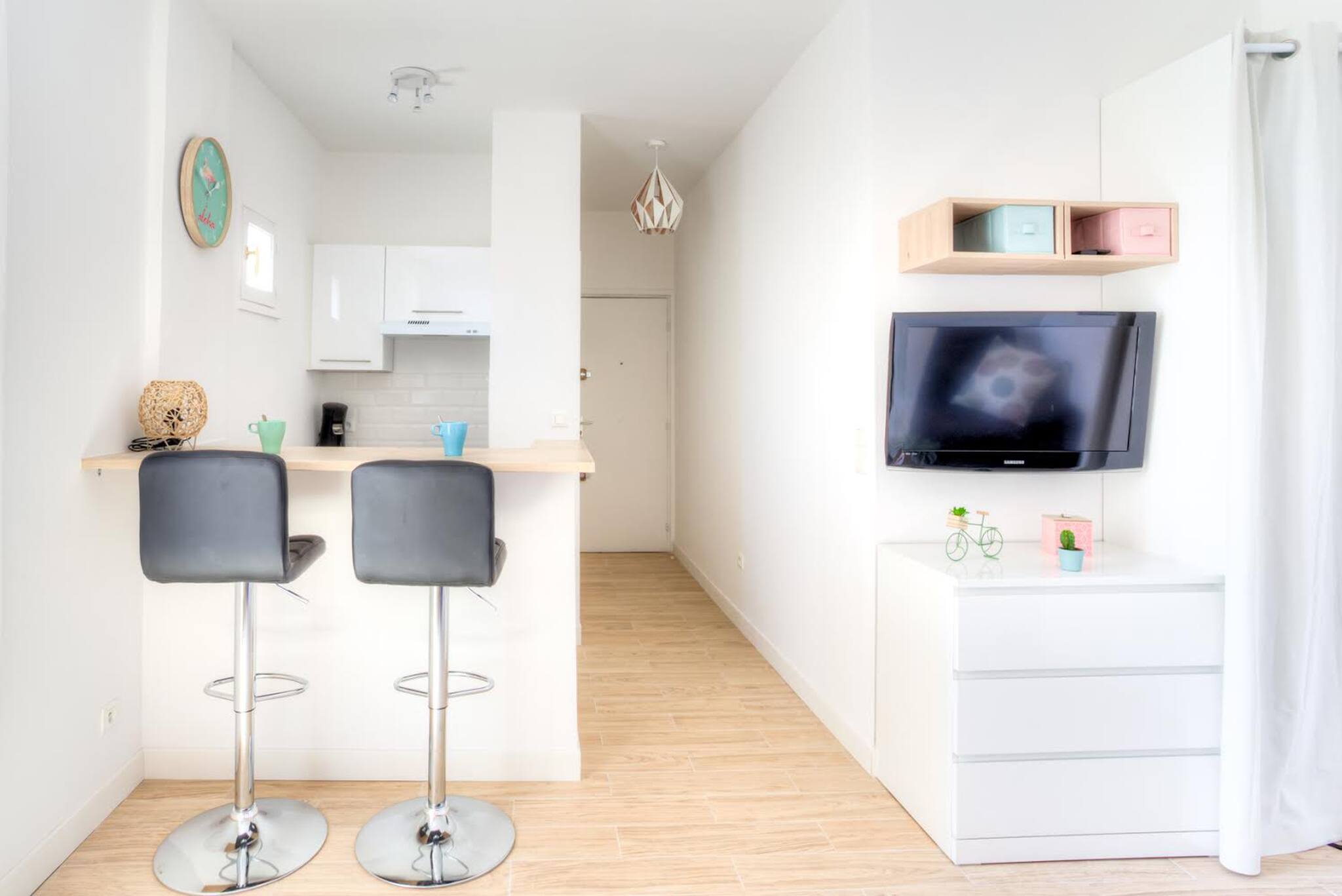 L'appartamento a Nice ha capacità per 2 persone. Alloggio di 21 m². Ha giardino arredato, ferro da stiro, asciugacapelli, riscaldamento centralizzato, aria condizionata, garage in vicino alla struttura, 1 ventilatore, 1 Televisore.La cucina, è attrezzata con microonde, stoviglie/posate, utensili da cucina e caffettiera.