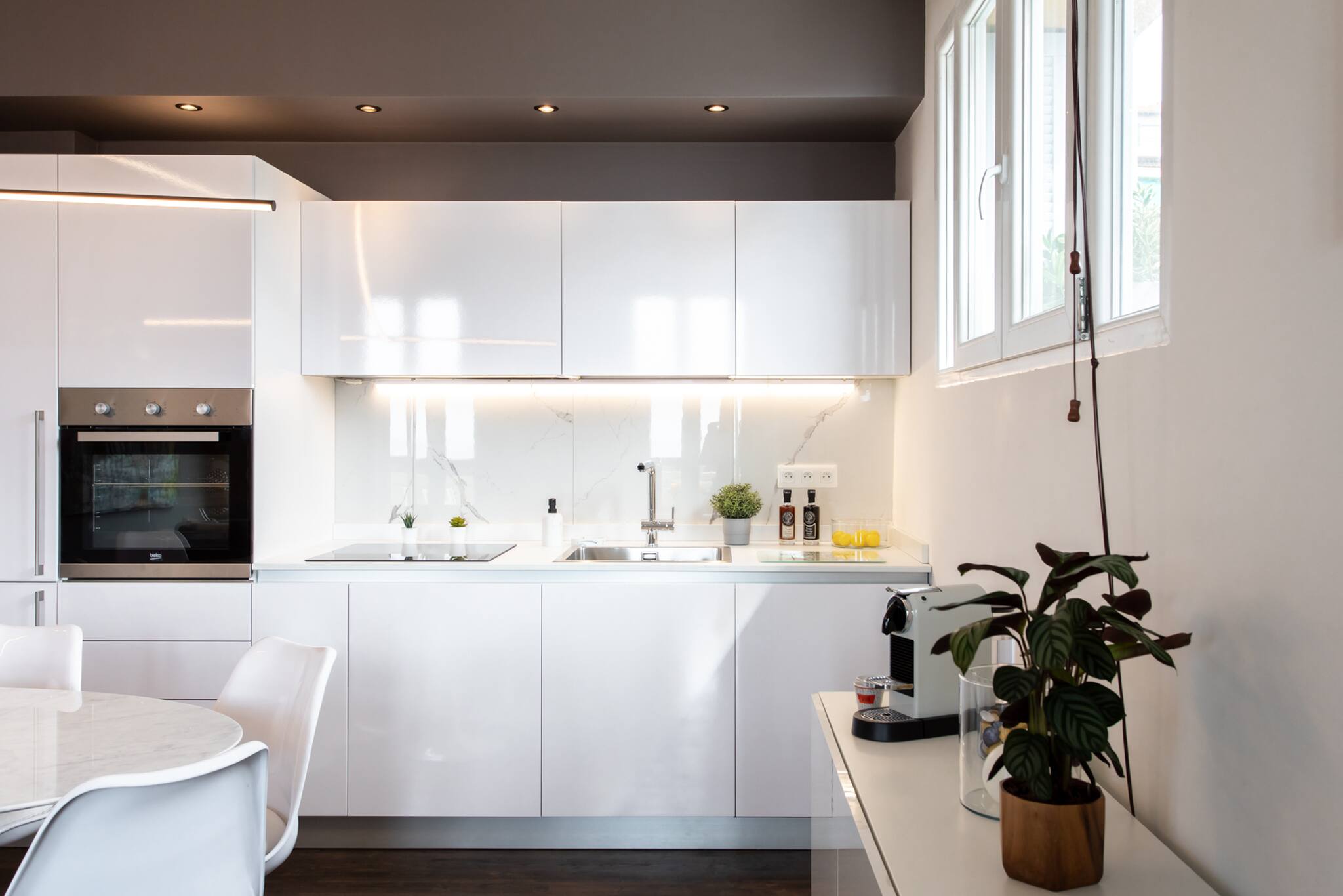 La cucina americana, è attrezzata con frigorifero, microonde, forno, congelatore, lavastoviglie, stoviglie/posate, utensili da cucina, caffettiera, tostapane e bollitore.