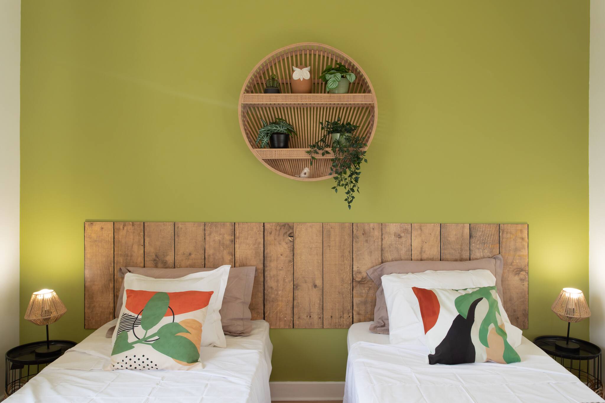 . Une deuxième chambre avec deux lits jumeaux 90cm, rangements au-dessus des lits