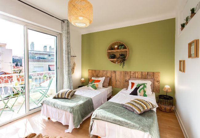 Cet appartement lumineux de 74m² avec 2 chambres est situé au dernier étage (7ème) avec ascenseur. Très central il est situé à 10min à pied du Palais des Festivals et de la Croisette. Redécoré en 2022 il dispose AC, de lits double 160 et jumeaux 90, 2 balcons dont un avec vue 180° sur la ville & la baie, salle de douche, WIFI, espace bureau, cuisine équipée avec lave-vaisselle & lave-linge, grand séjour avec TV. Logement idéal pour un séjour entre amis ou en famille ou en congrès.