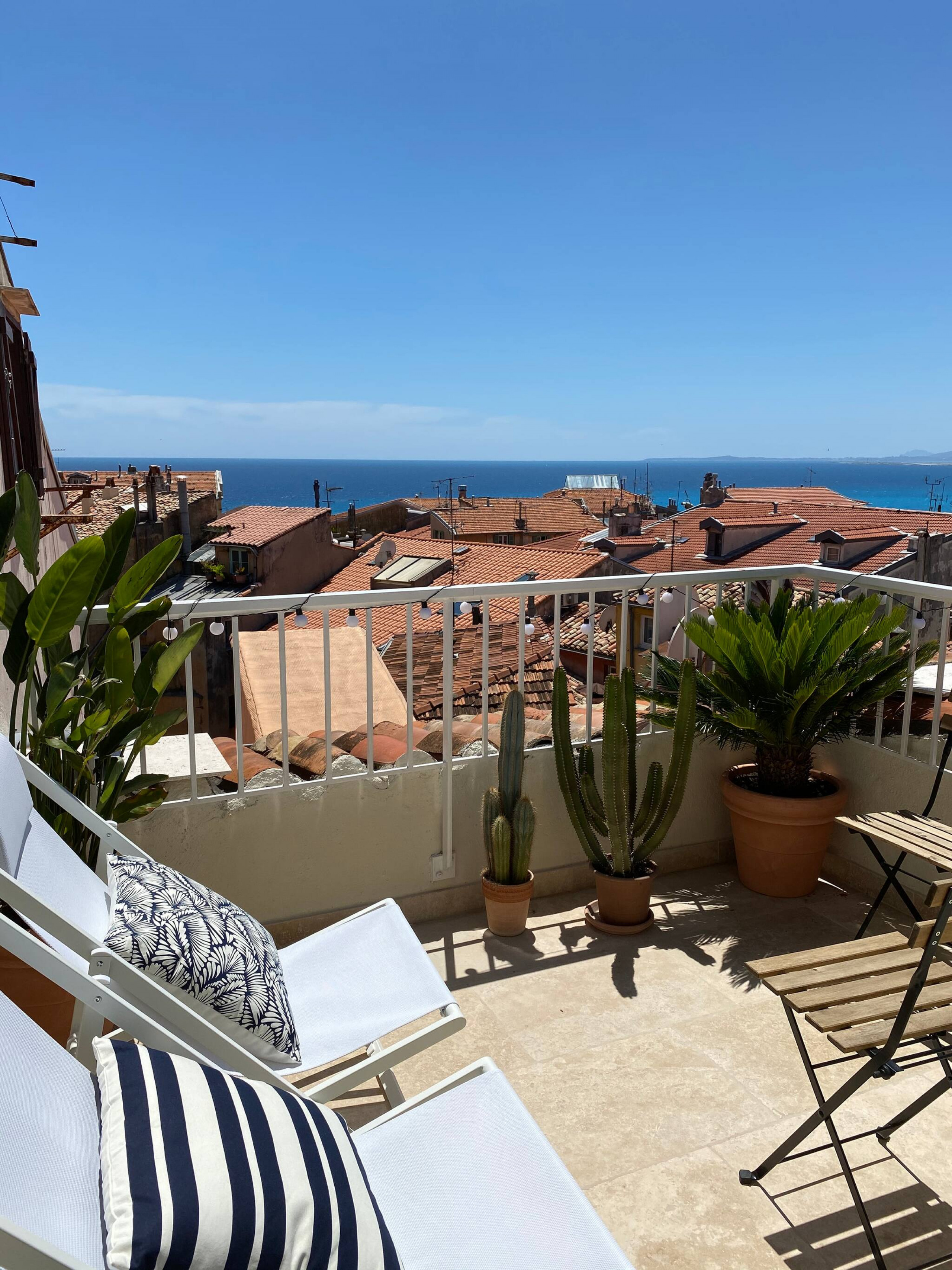 Ce lumineux 2 pièces climatisé, mansardé de 45m² au design contemporain hautement soigné dispose de tous le confort pour rendre agréable votre séjour à Nice. Situé au 6ème et dernière étage sans ascenseur d’un immeuble Niçois typique il offre une terrasse panoramique offrant vue sur la vielle ville la Mer et les collines. Des nombreux commerces sont à proximités Un séjour en amoureux ou entre amis c'est l'idéal !