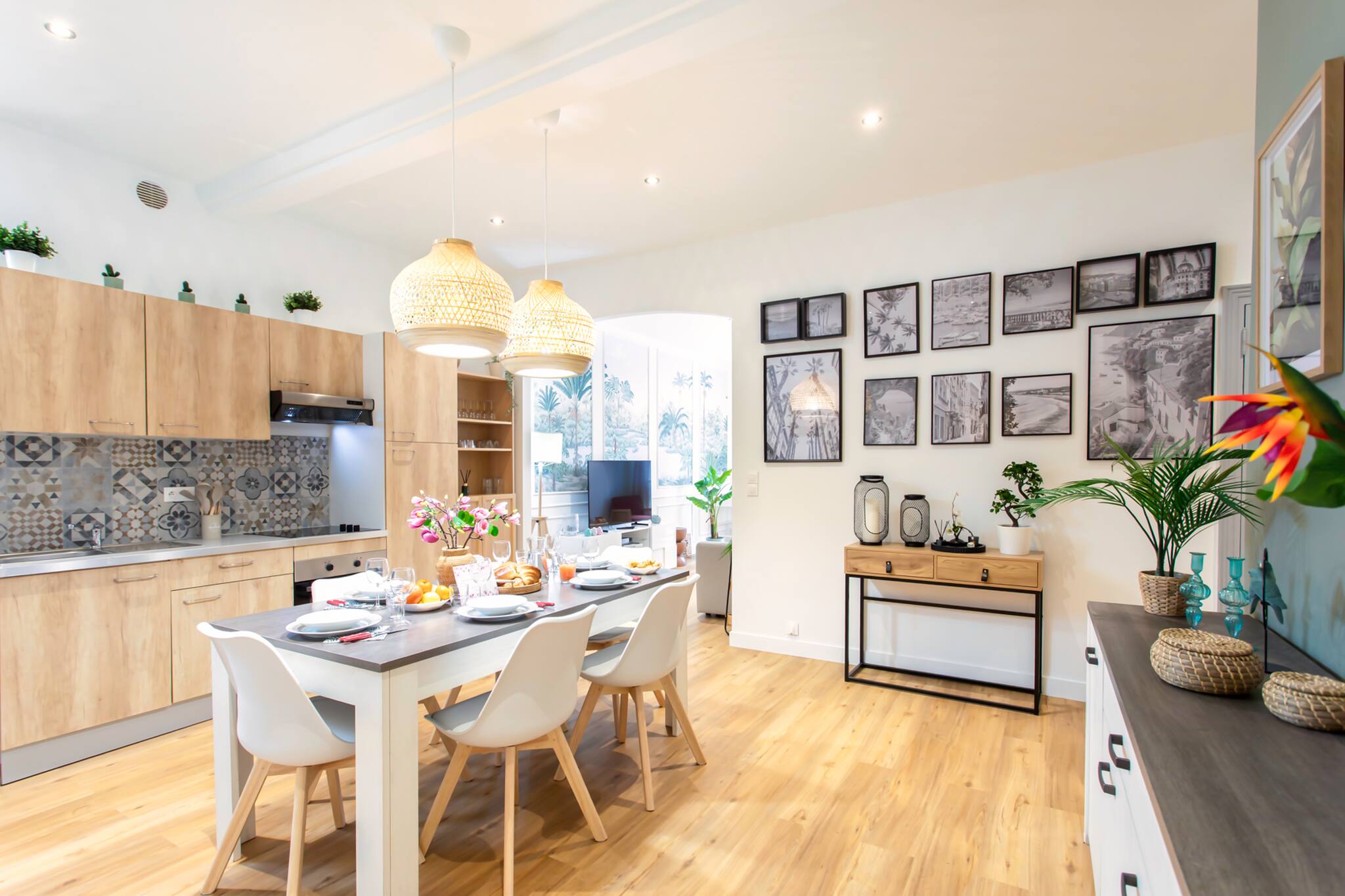 . Une cuisine entièrement équipée : Frigo ; congélateur, four, micro-onde, lave-vaisselle, cafetière Nespresso, bouilloire électrique, grille-pain, évier, plan de travail, un kit pour cuisiner, vaisselle, couverts et espaces de rangements