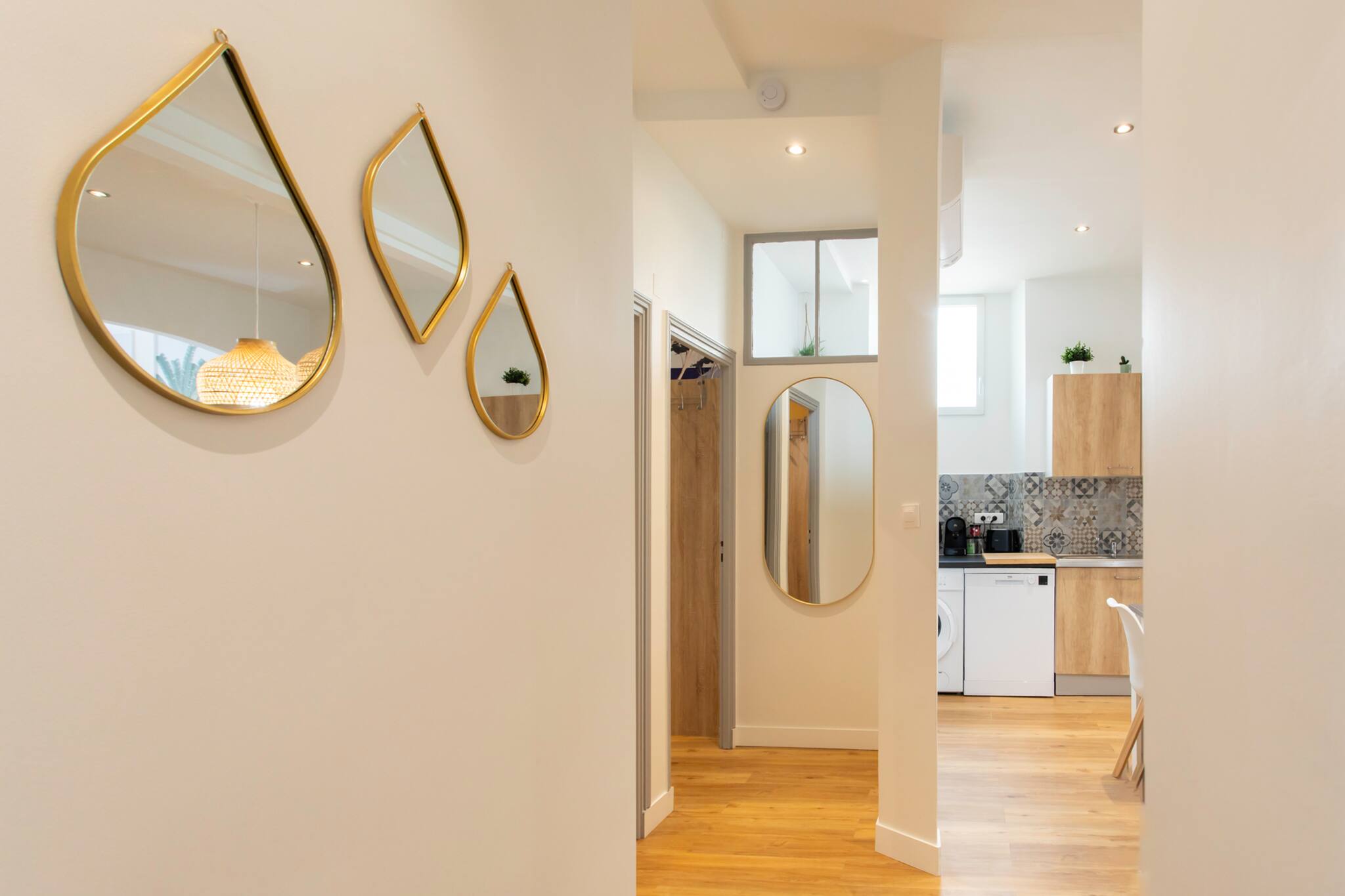 . Couloir d’entrée distribuant le salon et les chambres, la cuisine et les WC séparé