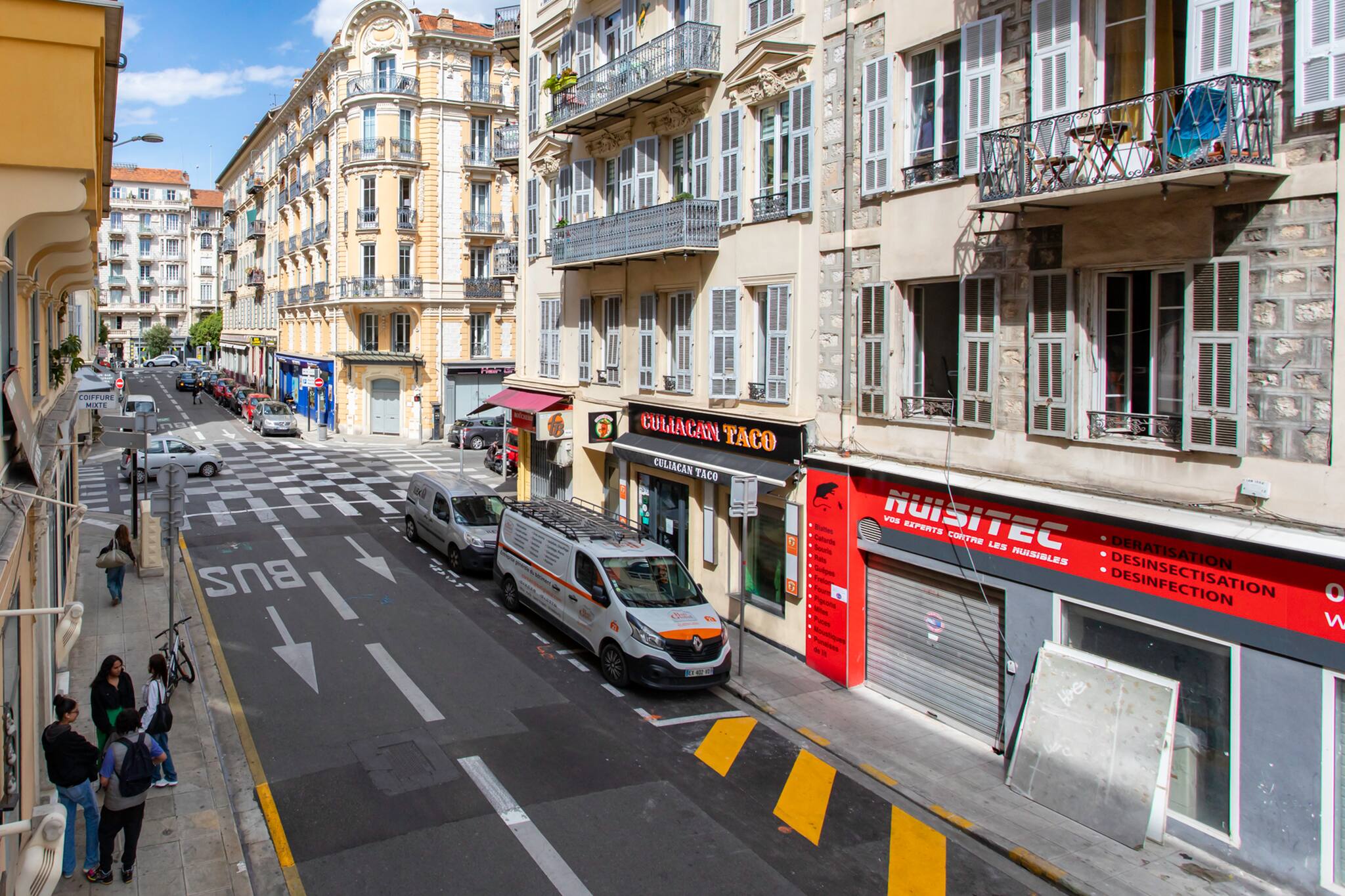 - Arrêt de bus J. Médecin / Hôtel des Postes (lignes 8 et 38) à 1 minute à pied.