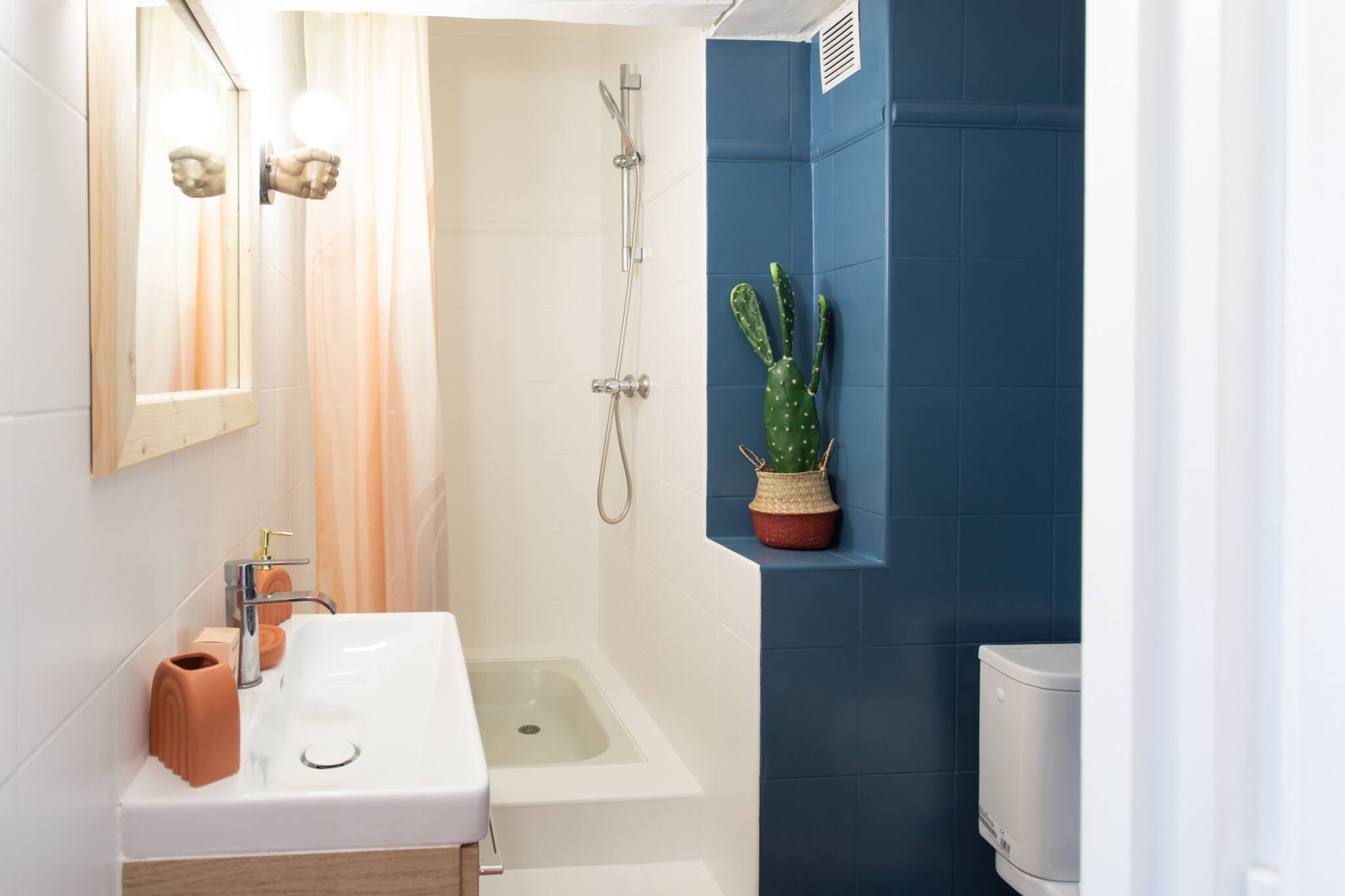 . Une seconde salle de bain avec douche, 1 vasque et miroir, sèche-cheveux et WC