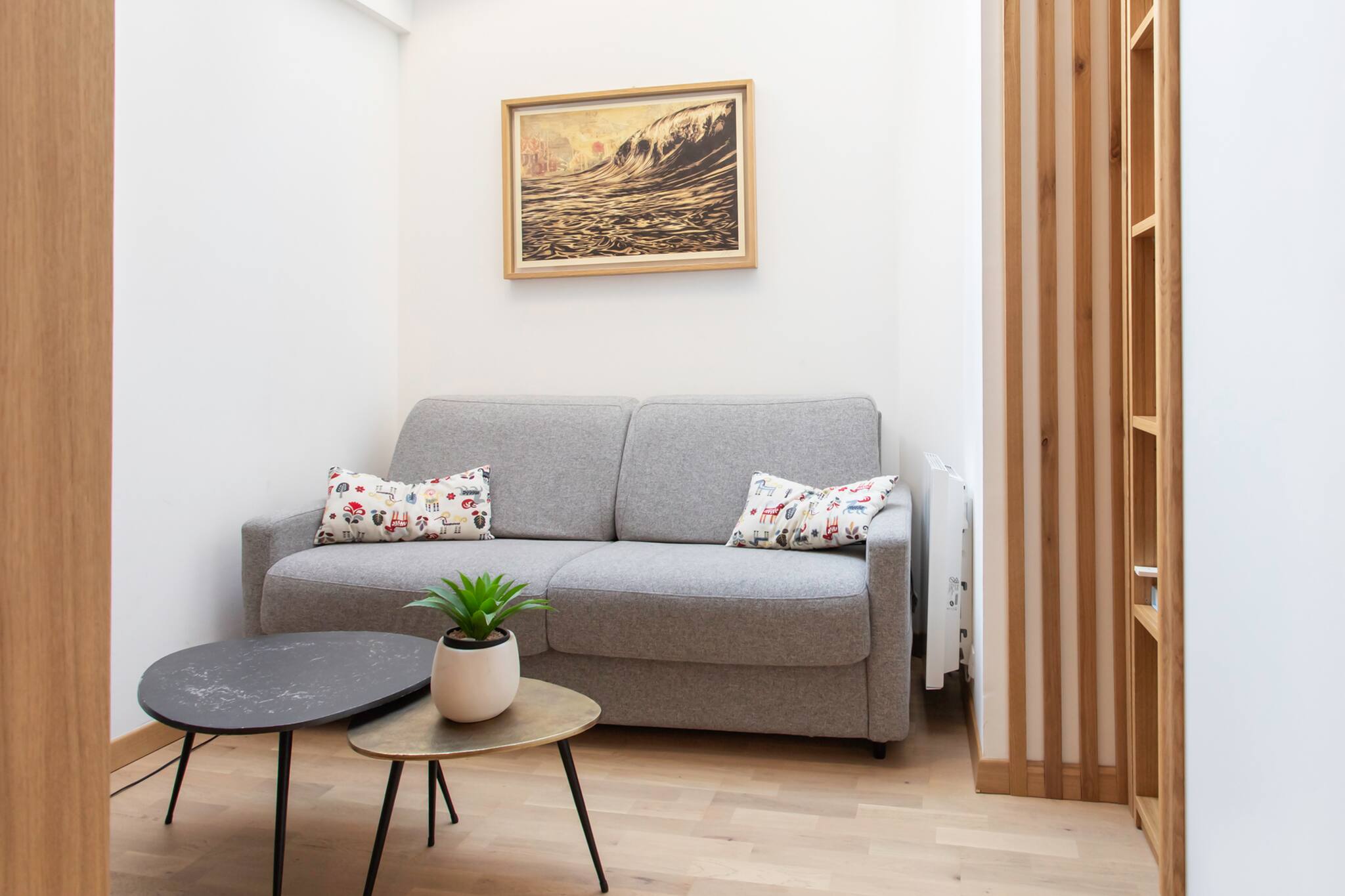 Cet appartement de 40m² est situé au 4ème étage sans ascenseur. Il sera idéal pour un séjour touristique ou professionnel à quatre. Ce logement comprend :