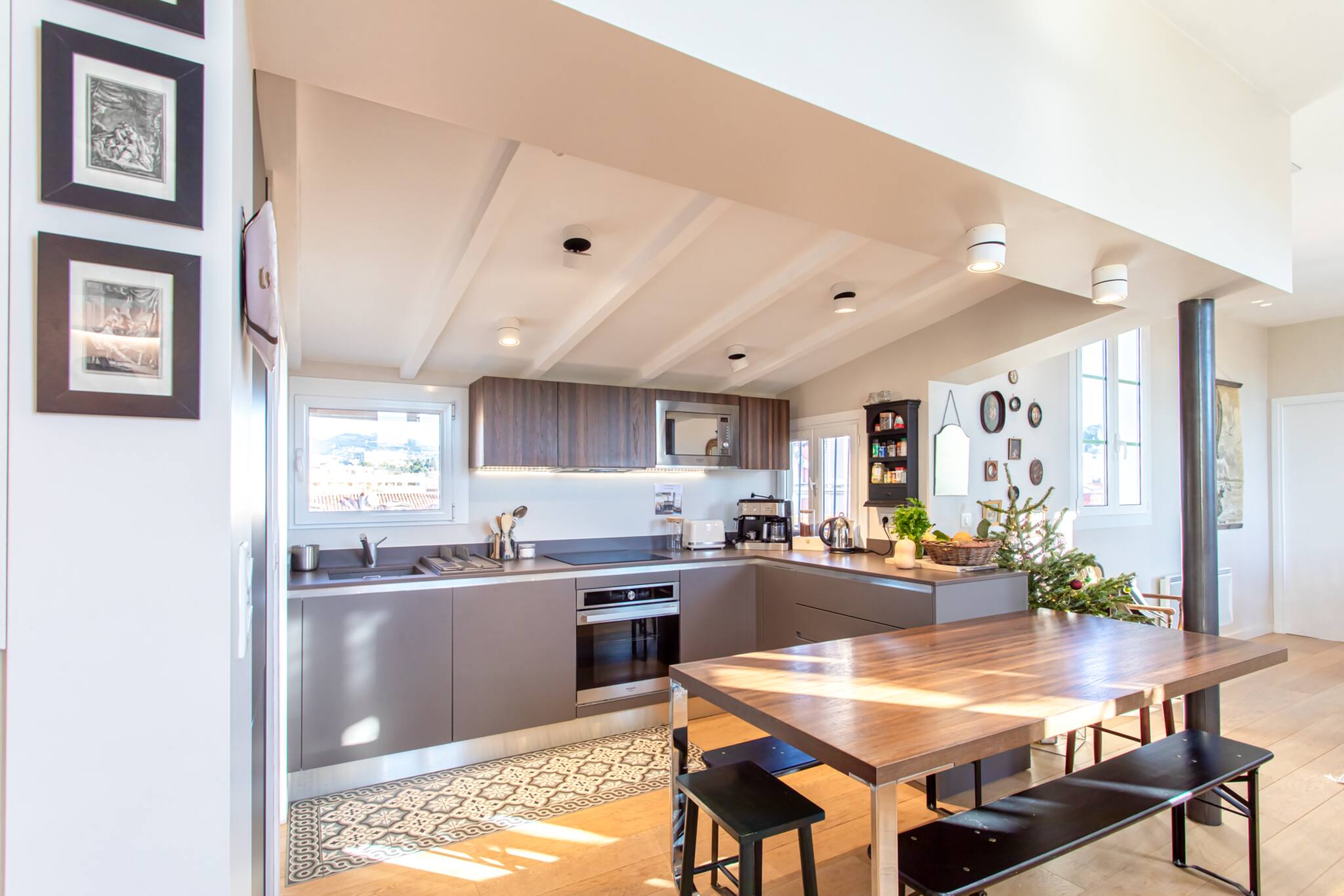 Ce Duplex climatisé de 100m2 doté d'une terrasse de 10m2 avec vue panoramique sur la ville est un grand 3 pièces traversant, qui est situé au 6ème étage sans ascenseur. En plein cœur du vieux Nice, à 2 pas de la Promenade des Anglais et du cours Saleya, celui-ci vous permet d'explorer entièrement la ville à pied. Doté de deux belles chambres avec chacune sa salle d'eau, d'une spacieuse pièce de vie avec cuisine ouverte, un séjour entre amis ou en couple, Le Duplex de l'Opéra est le lieu idéal !