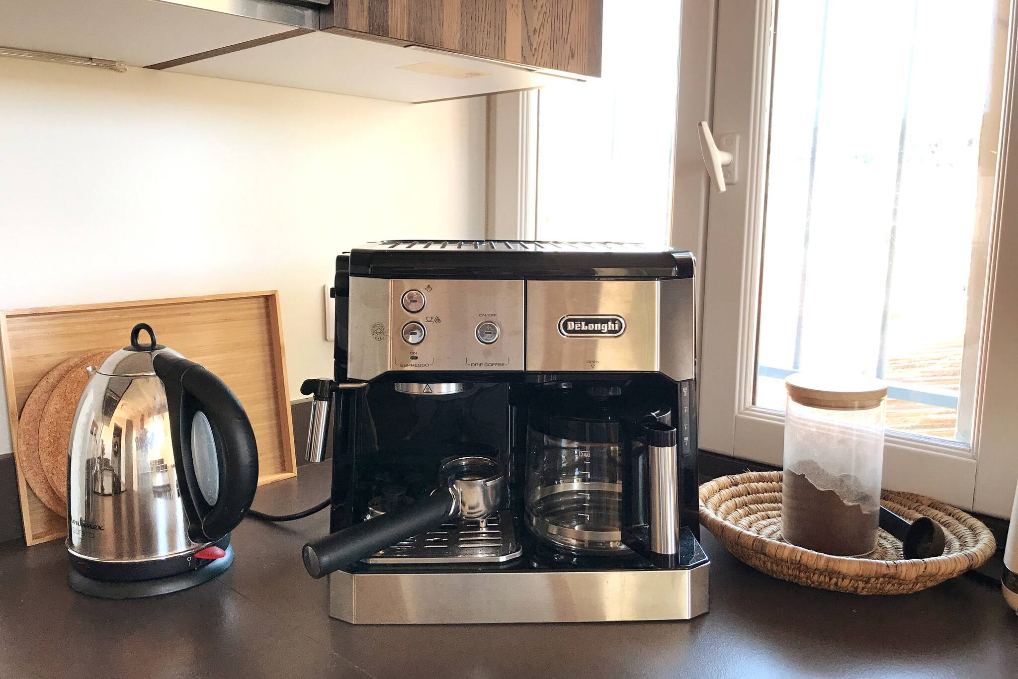 • Cuisine équipée (Lave-vaisselle, frigo, congélateur, micro-ondes, four à chaleurs tournante, machine à café Delonghi, bouilloire électrique, grille-pain, évier, et le nécessaire pour cuisiner