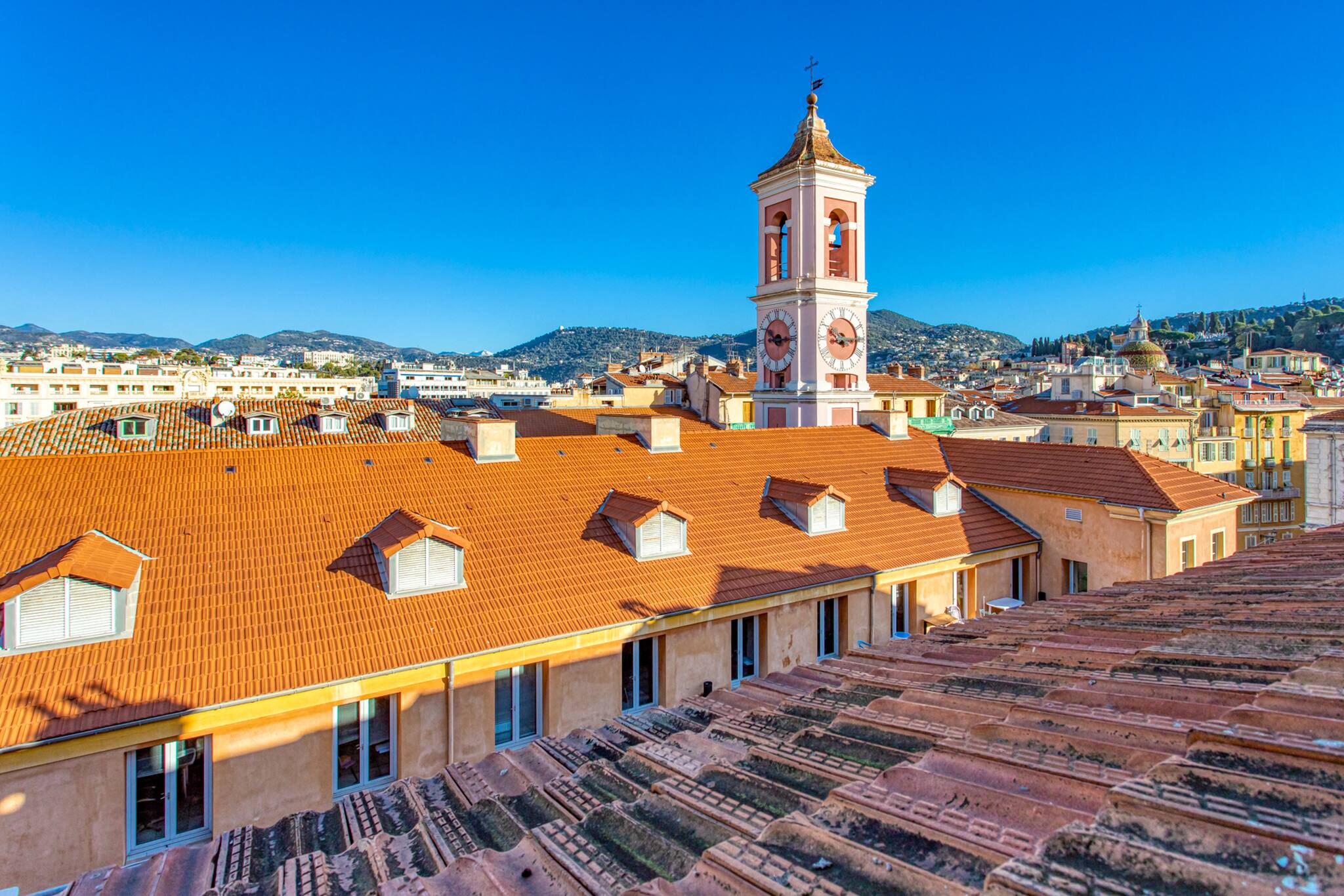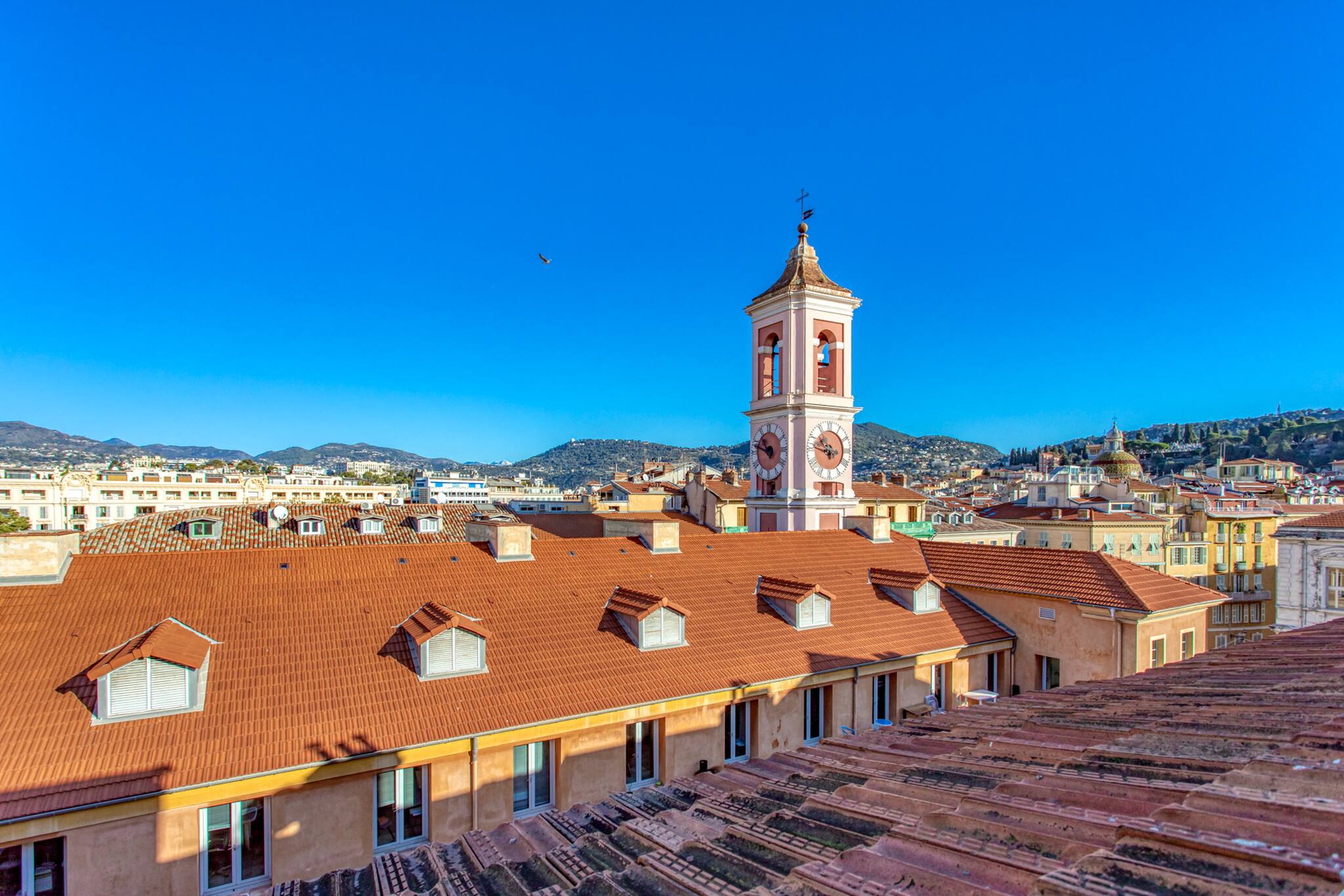 • Une terrasse de 10m² offrant une vue sur les toits du Vieux Nice ainsi qu’un aperçue Mer, la terrasse est équipée d’une table repas, d’un coin détente pour profiter du soleil.