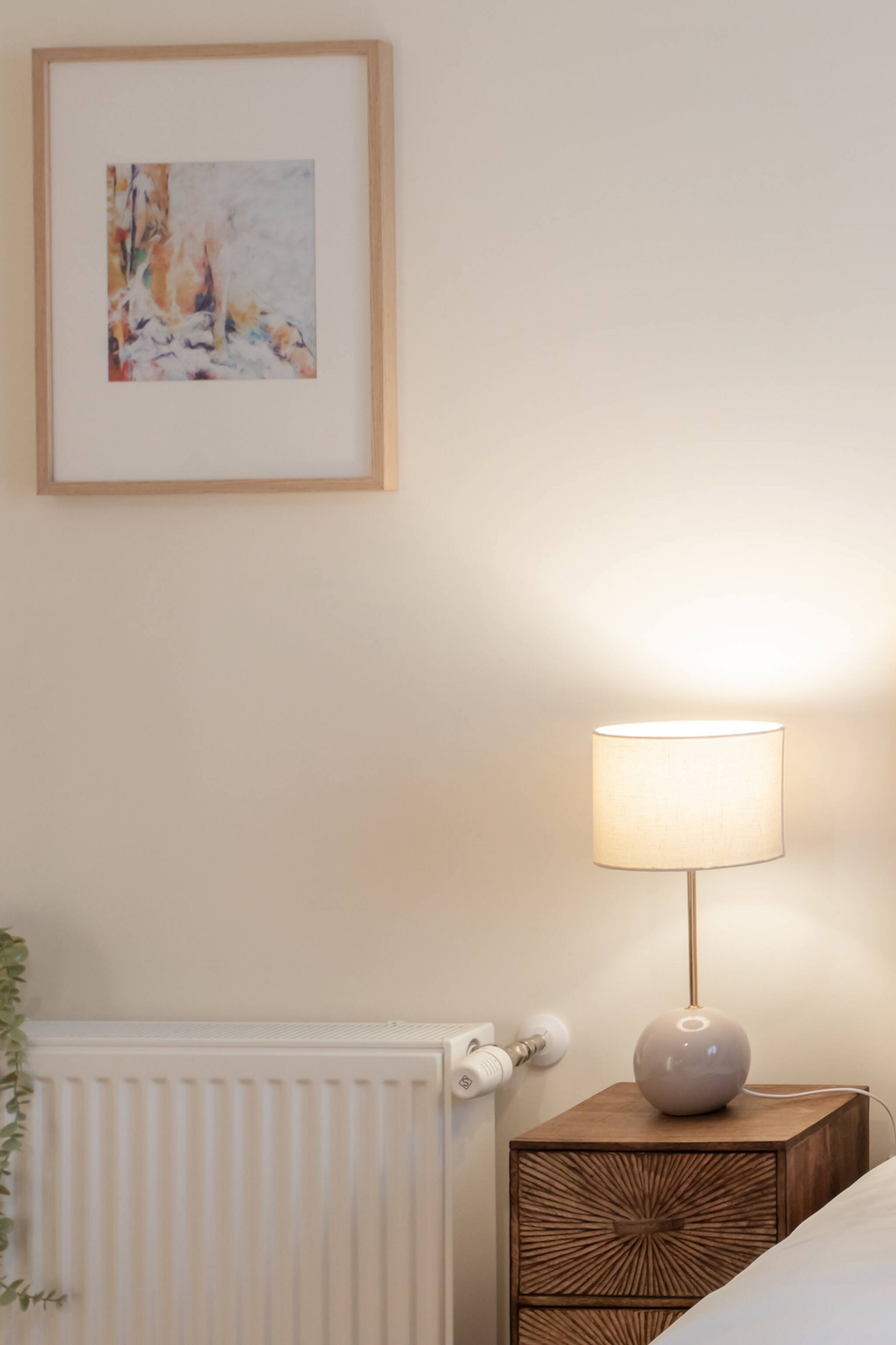 . Une deuxième chambre climatisée avec 2 lit twin de 90cm, placards de rangements, rideaux, 2 tables de chevet et 2 lampes