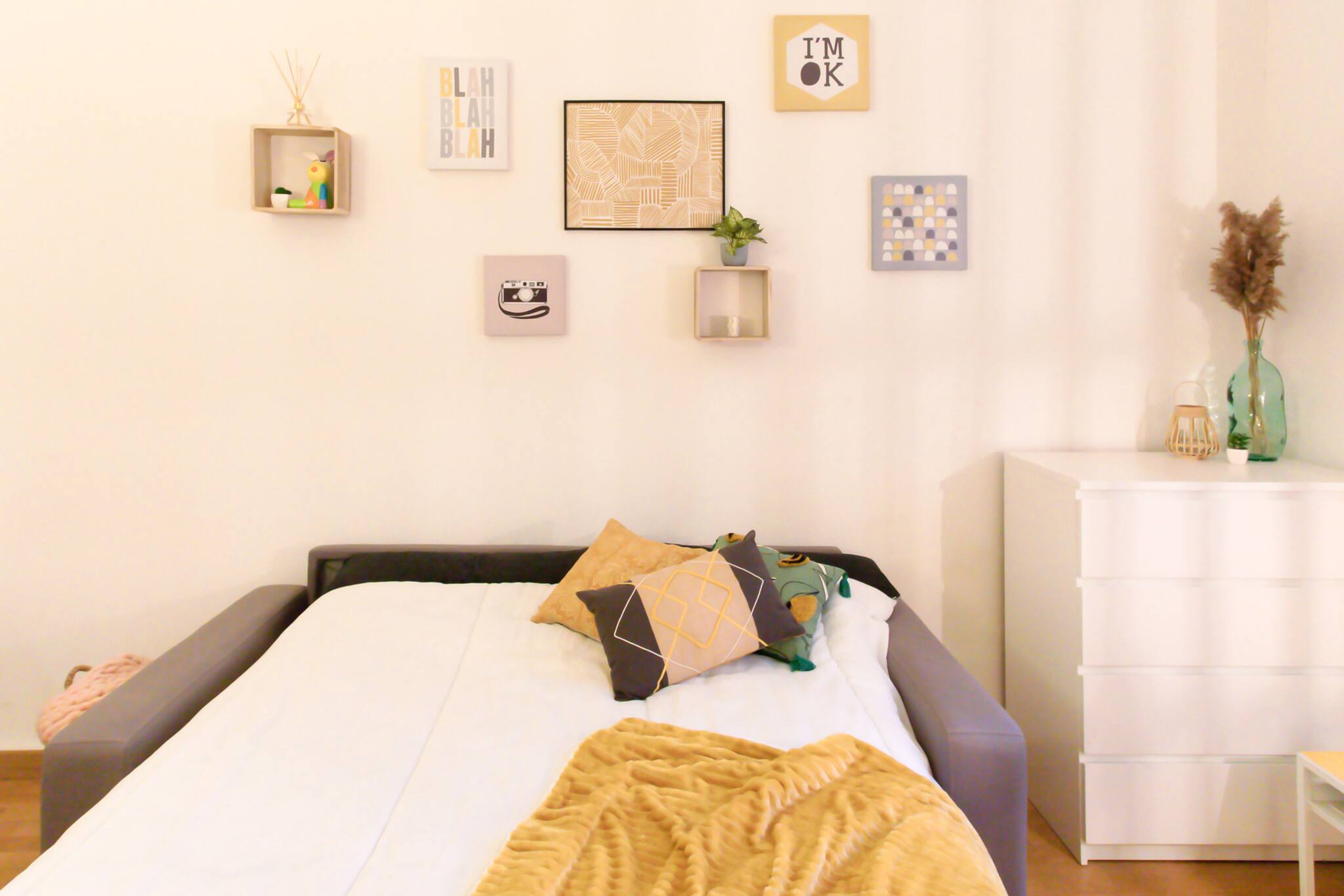 • Un confortable canapé lit double (140*190), et espaces de rangements