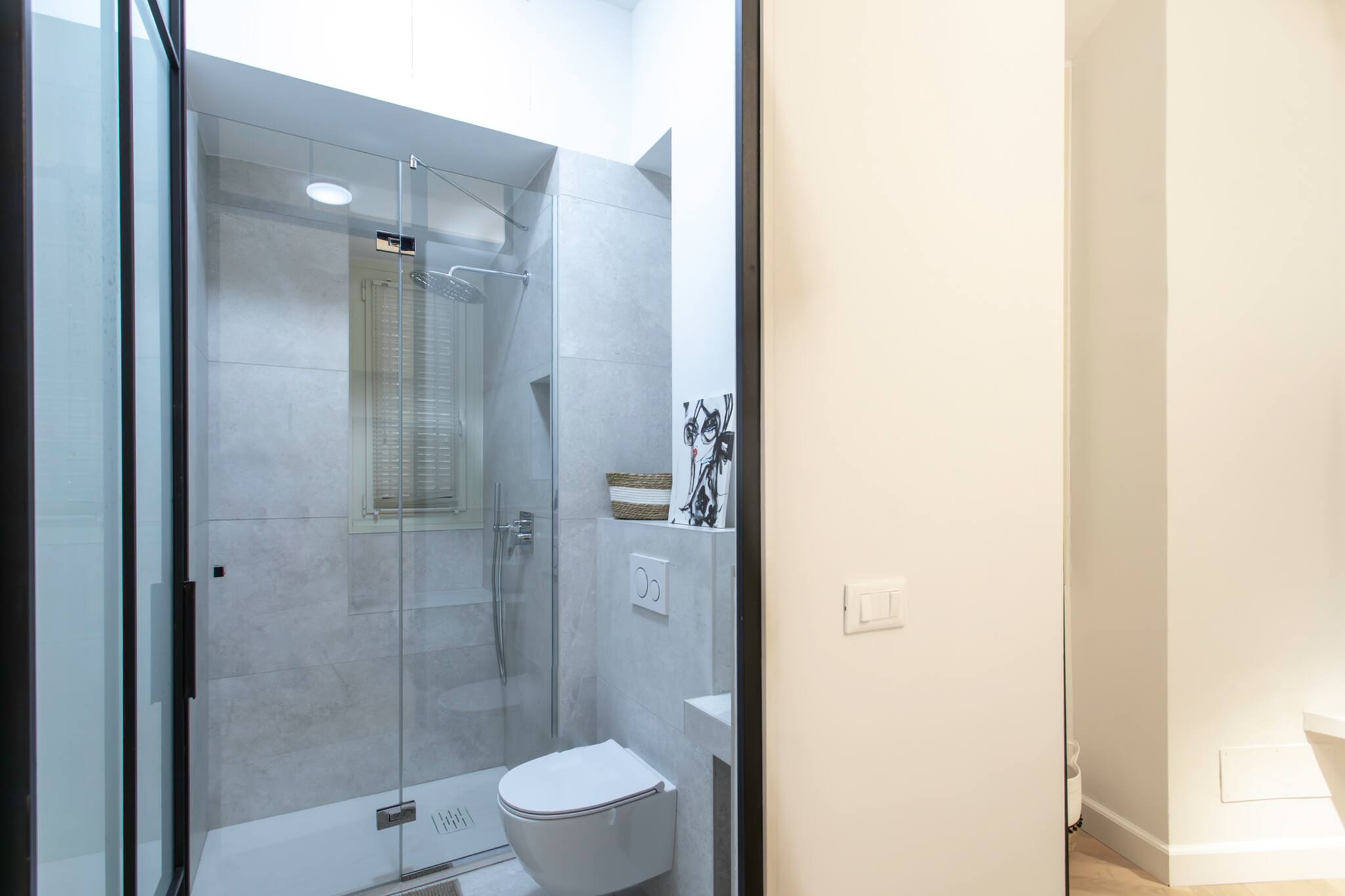 . Une deuxième suite parentale avec un lit double 160cm, climatisation réversible, chevets et liseuses, grande fenêtre double vitrage donnant sur l’arrière-cours de l’immeuble, rideaux filtrants, placards de rangement, une salle de douche privative équipée de vasque et meuble, WC, miroir, sèche-cheveux, sèche serviette, une magnifique douche à l’italienne