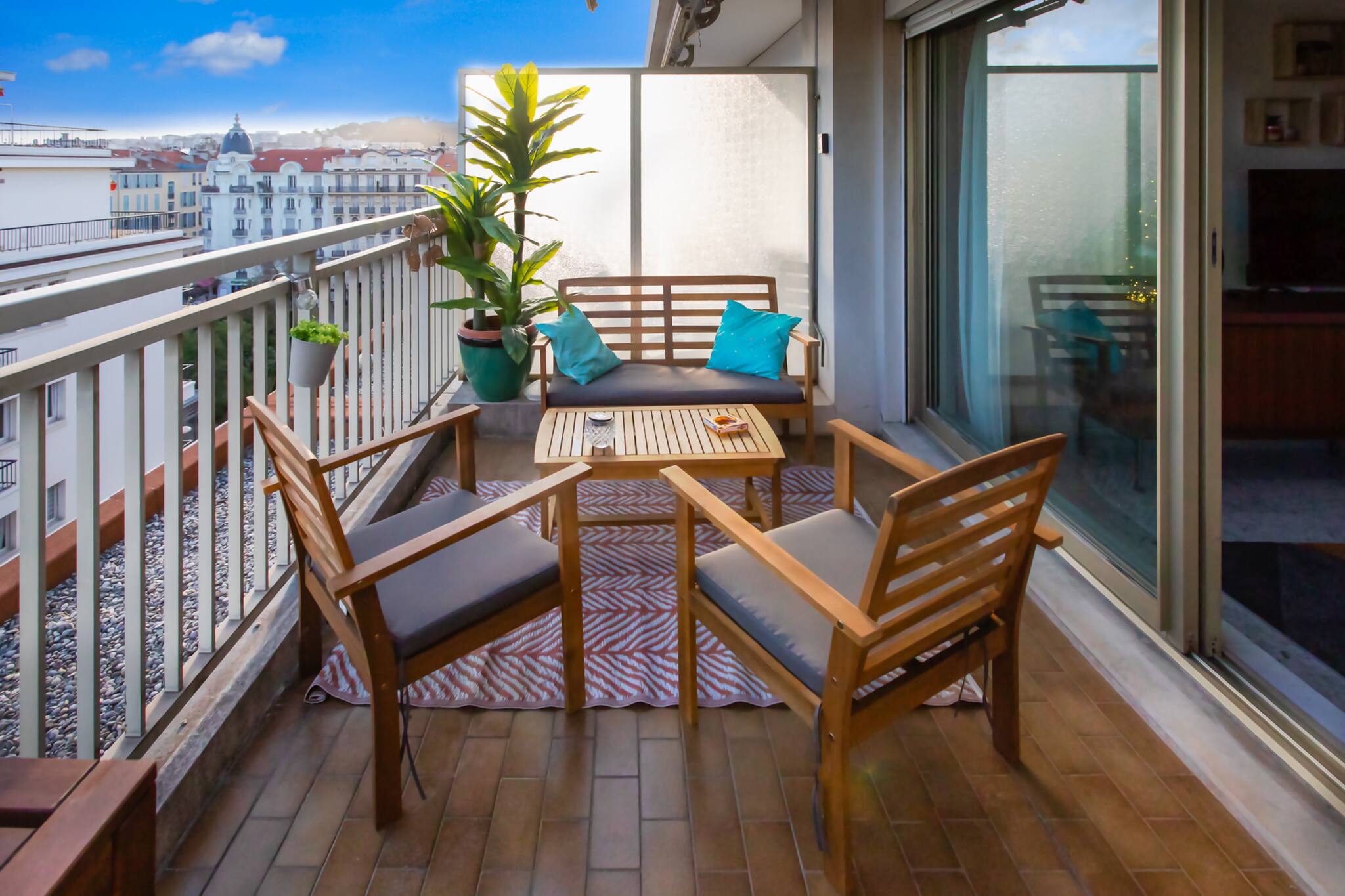 Ce lumineux 3pièces de 80m² est situé au 7ème étage avec ascenseur d’une résidence du carré d’or Niçois. Bénéficiant d’une magnifique terrasse avec vue sur la ville il est pourvu de tout le confort pour votre séjour: décoration soignée, garage privé, climatisation, 2 chambres avec balcon, salon, cuisine entièrement équipée, WC séparés. A 8min à pied de la Promenade des Anglais et de la Mer vous êtes à 5min de la Gare, localisation parfaite pour profiter de Nice et ses attractions comme un local.