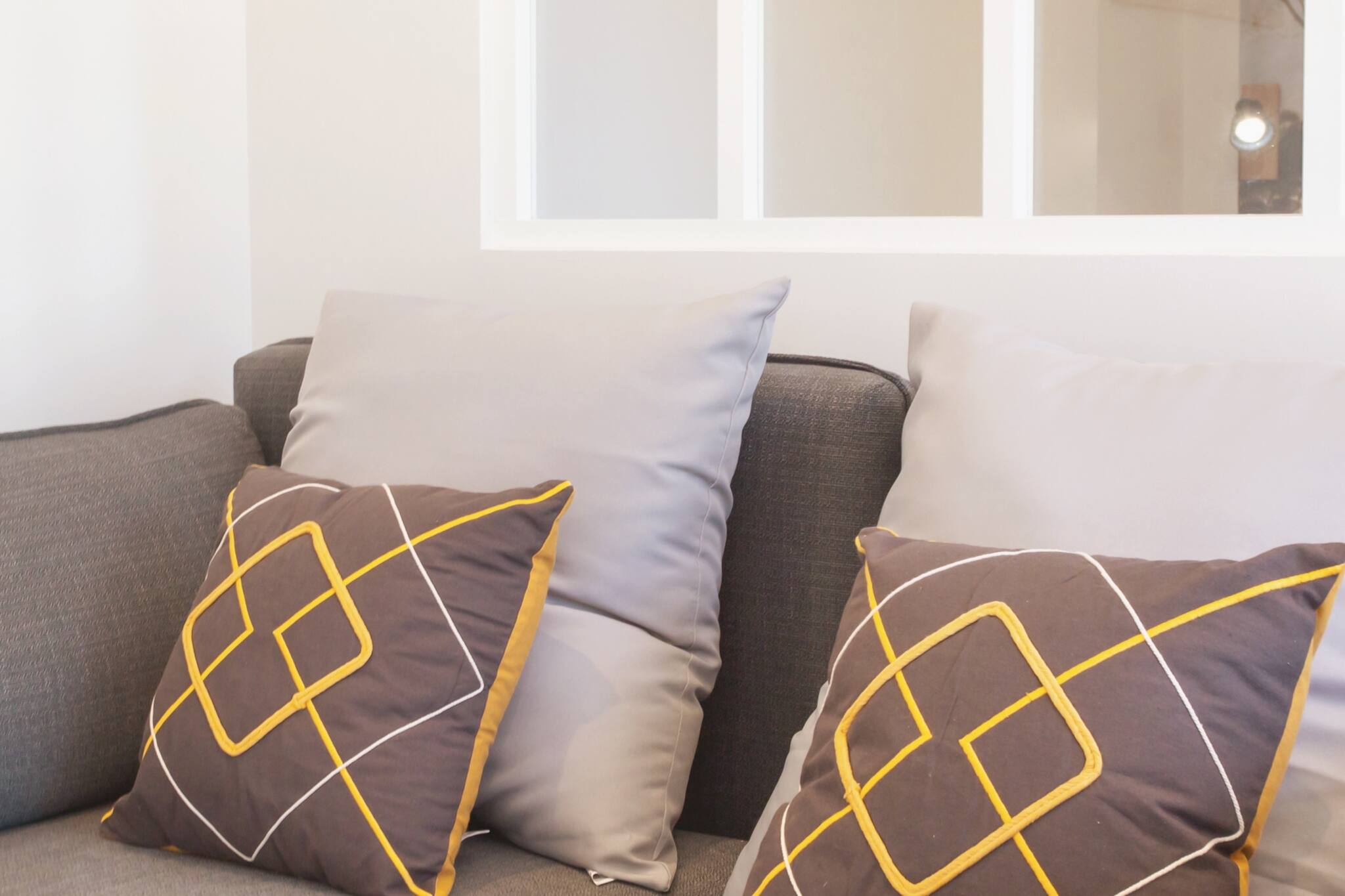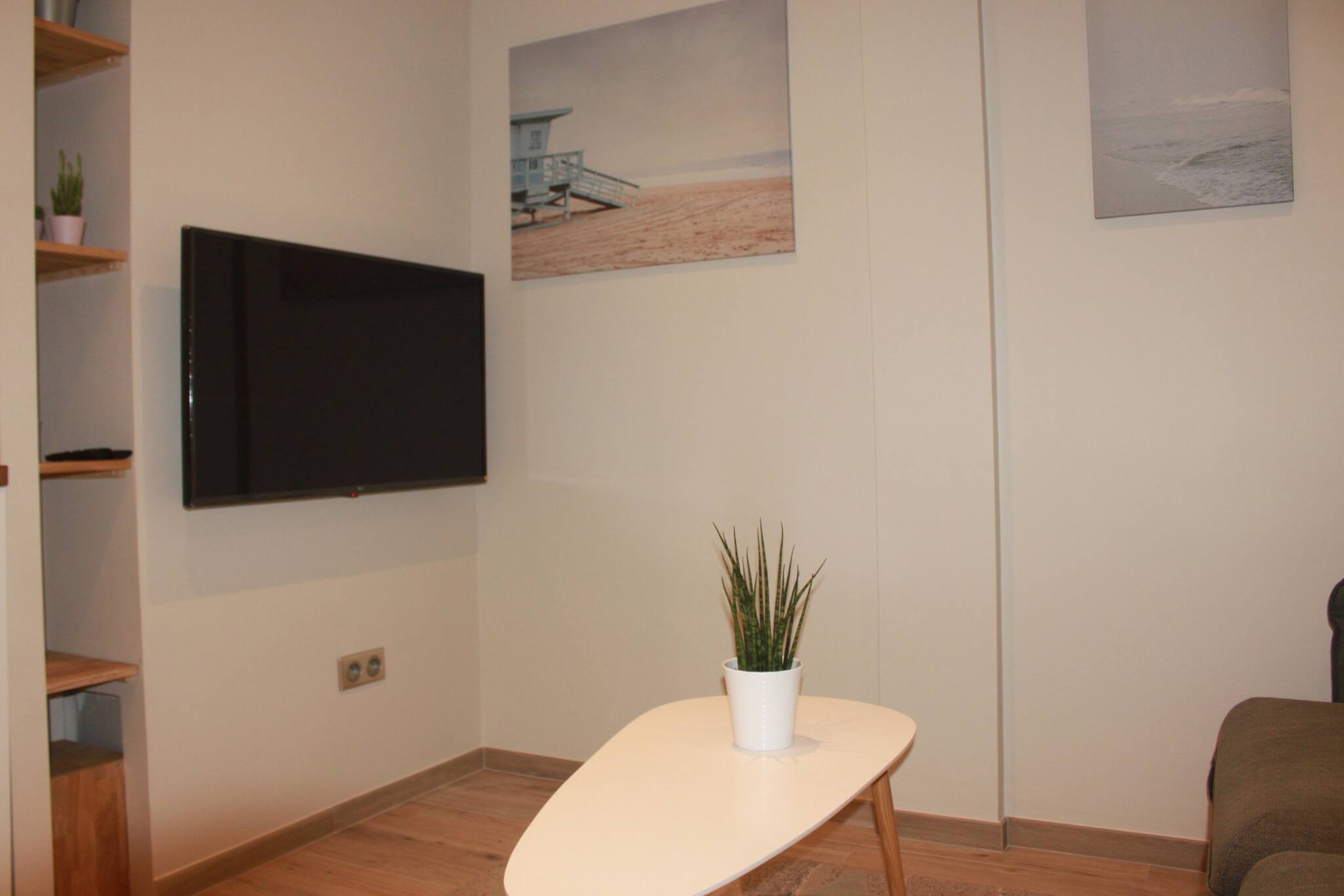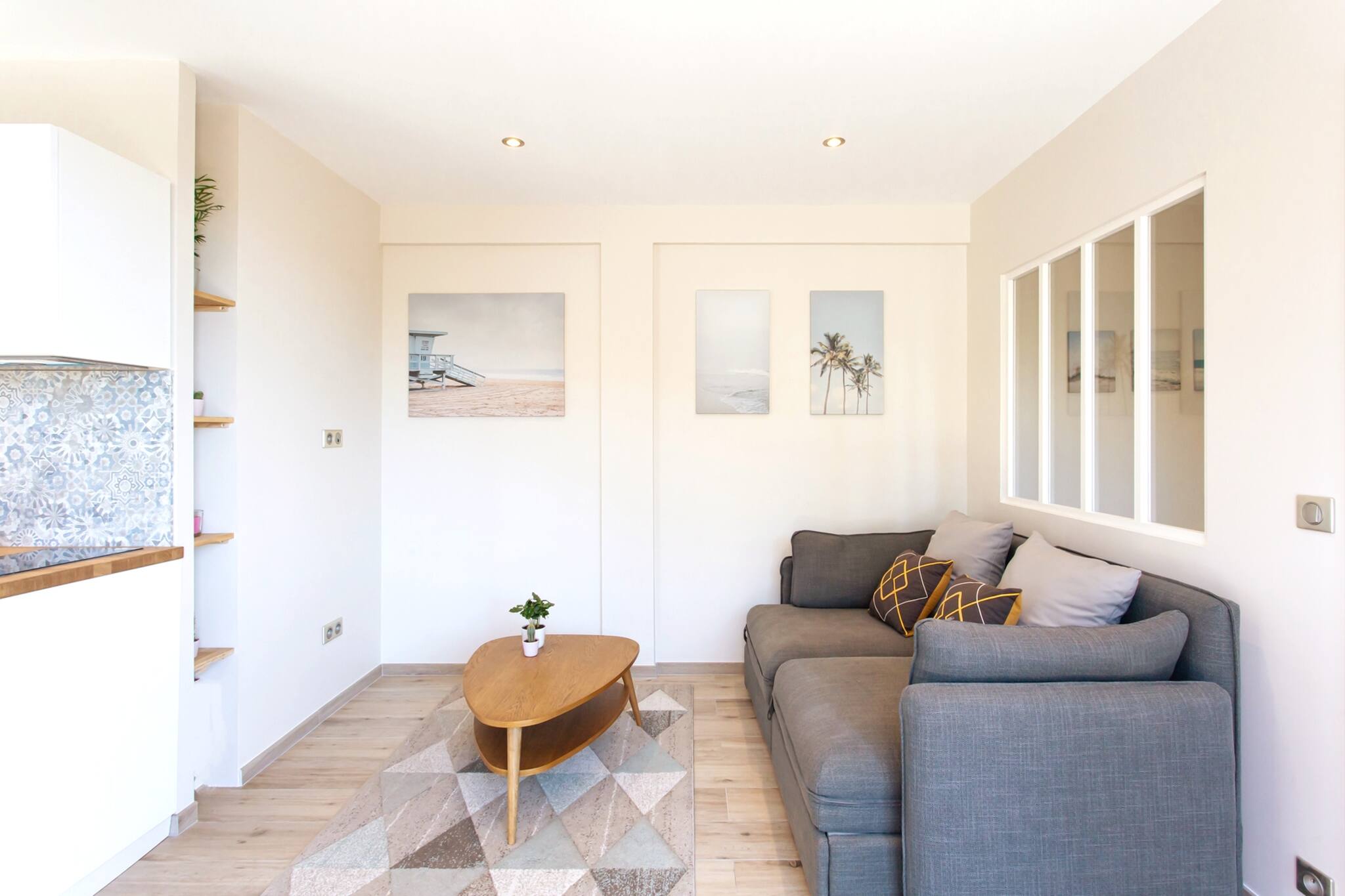 - Un séjour équipé d’un canapé, d’une table basse et de l’AC.