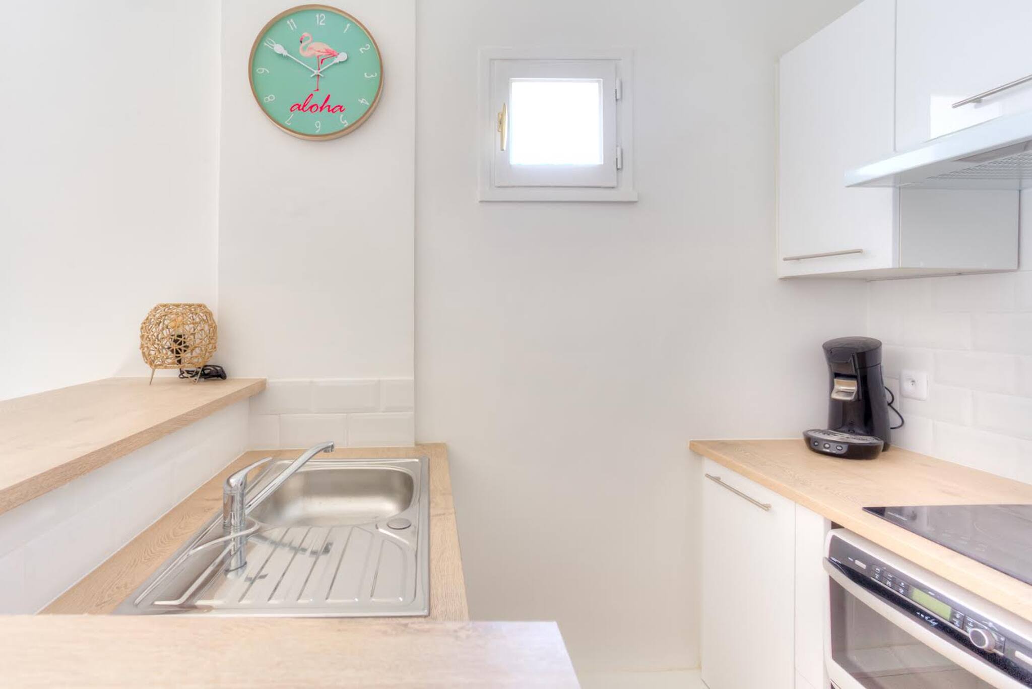 • Cuisine entièrement équipée (Frigo, micro-onde, machine Nespresso, bouilloire électrique, évier, espace de travail et tout le nécessaire de cuisine).