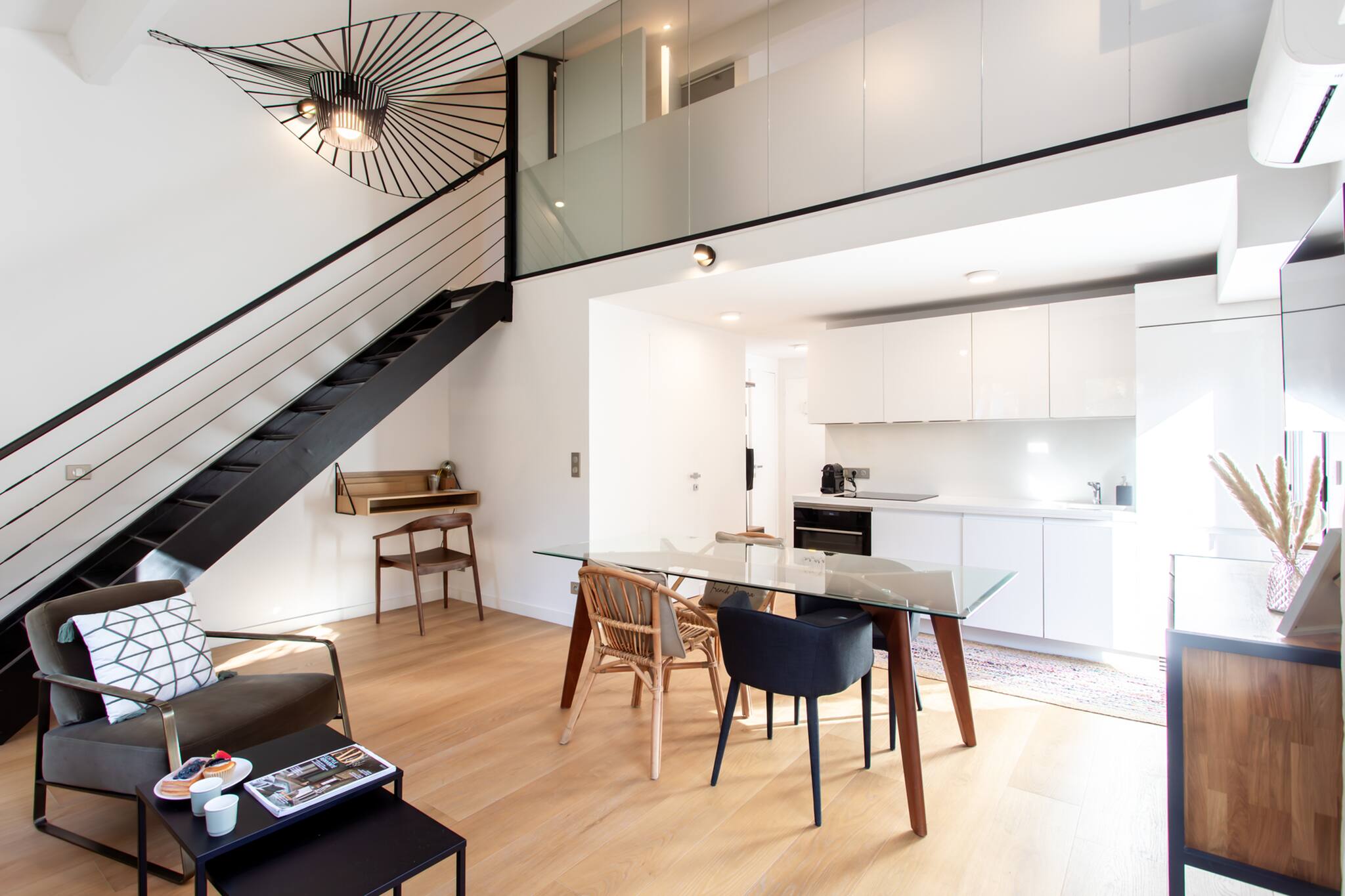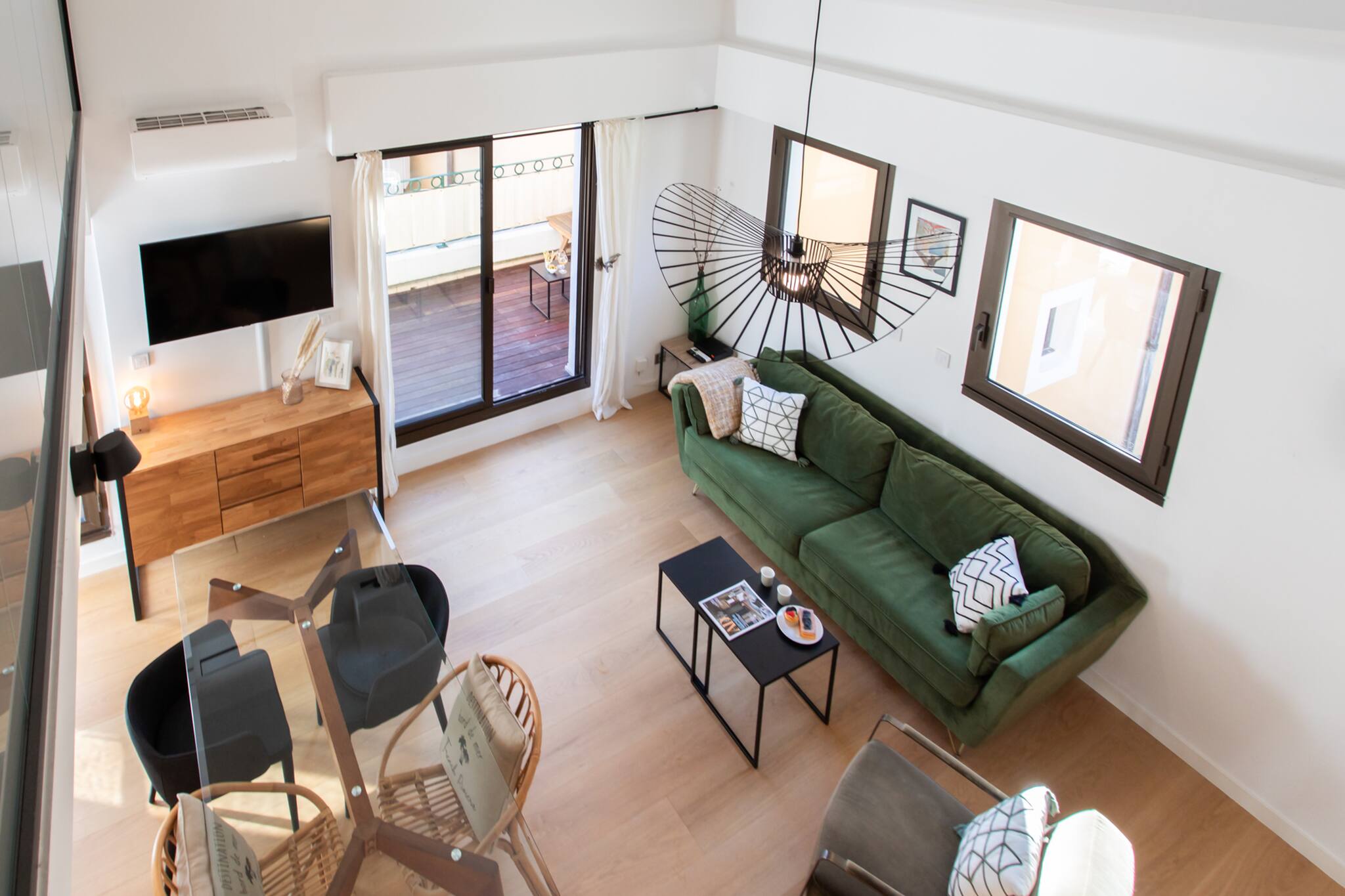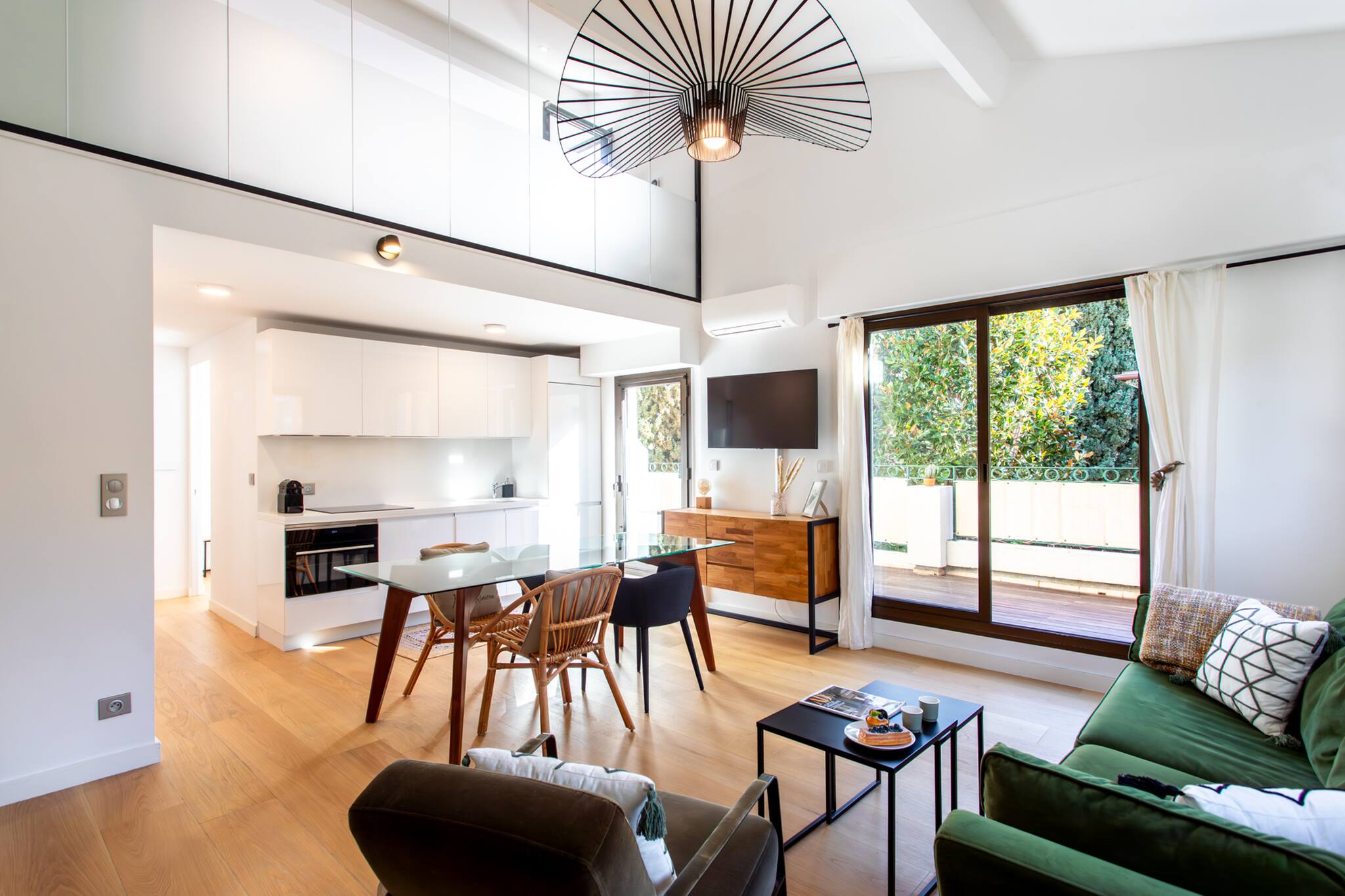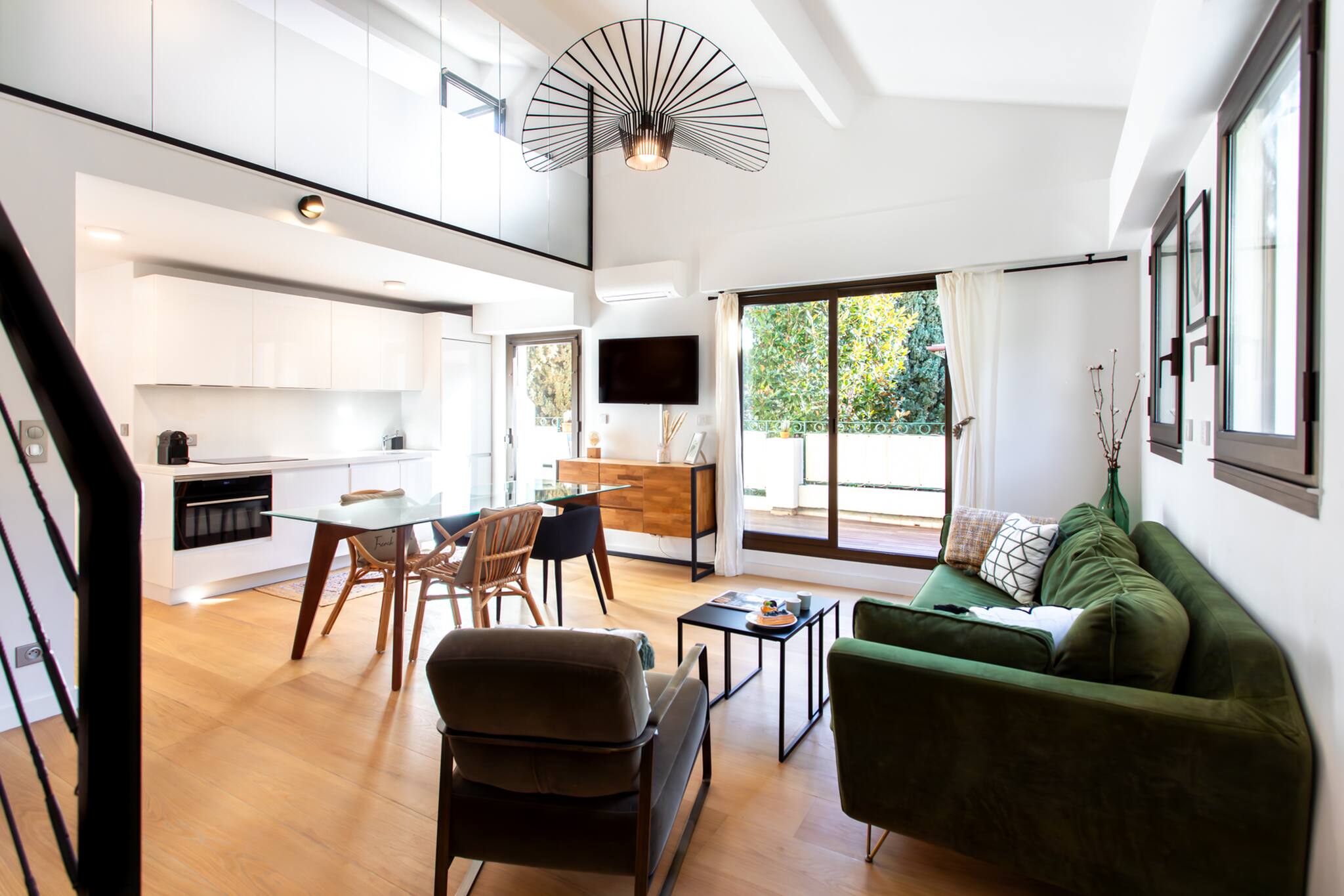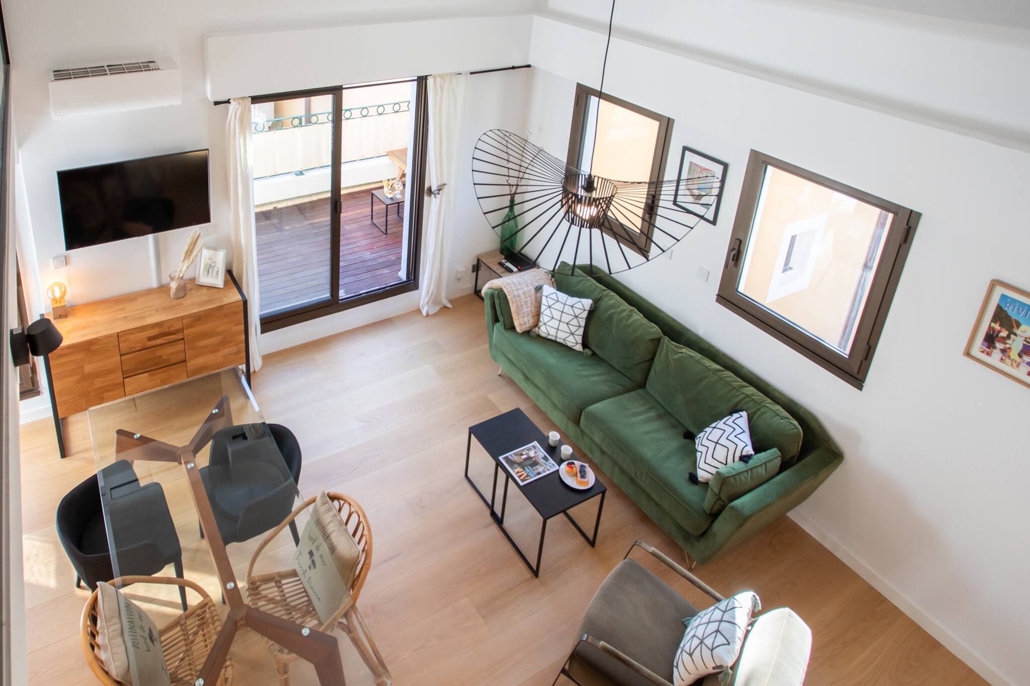 Ce lumineux duplex de 59m² est situé au 1er étage avec ascenseur. Sa terrasse de 20m² sera votre extérieur pour profiter pleinement du soleil et prendre vos repas ou apéritifs. Équipé avec soin pour votre séjour: parking souterrain, clim réversible, wifi, 2 chbres lits doubles, terrasse, équipée, cuisine, salon, 2 salles de douche, etc. Vous êtes à 2 mins à pied de la plage et du cœur du village. Ce logement duplex sera idéal pour profiter du meilleur de la côte d’azur en famille ou entre amis.