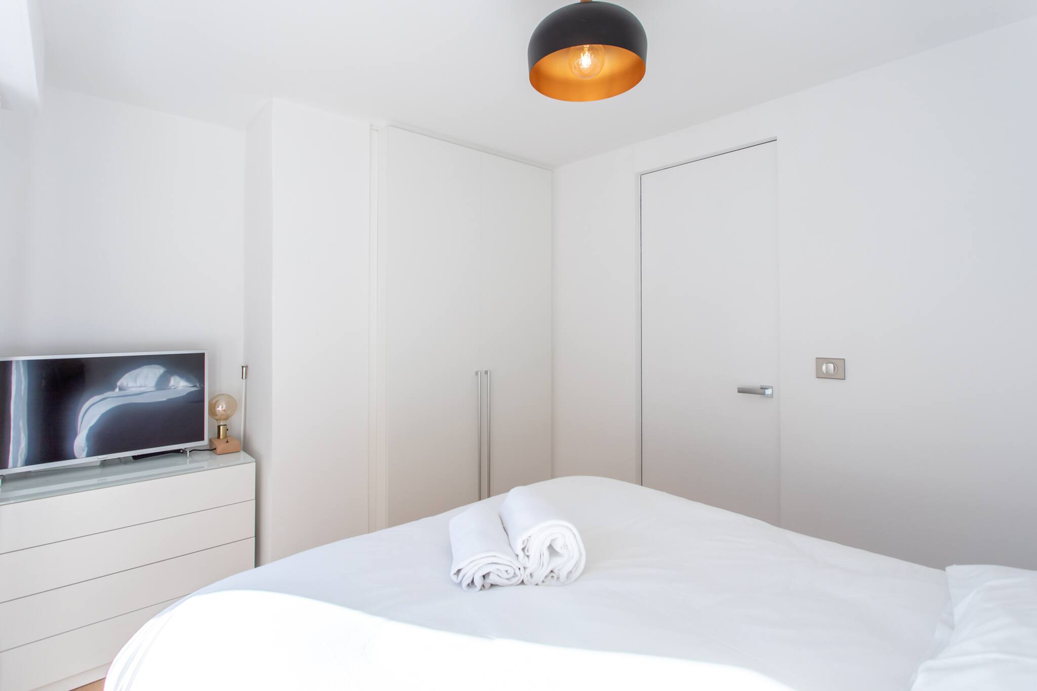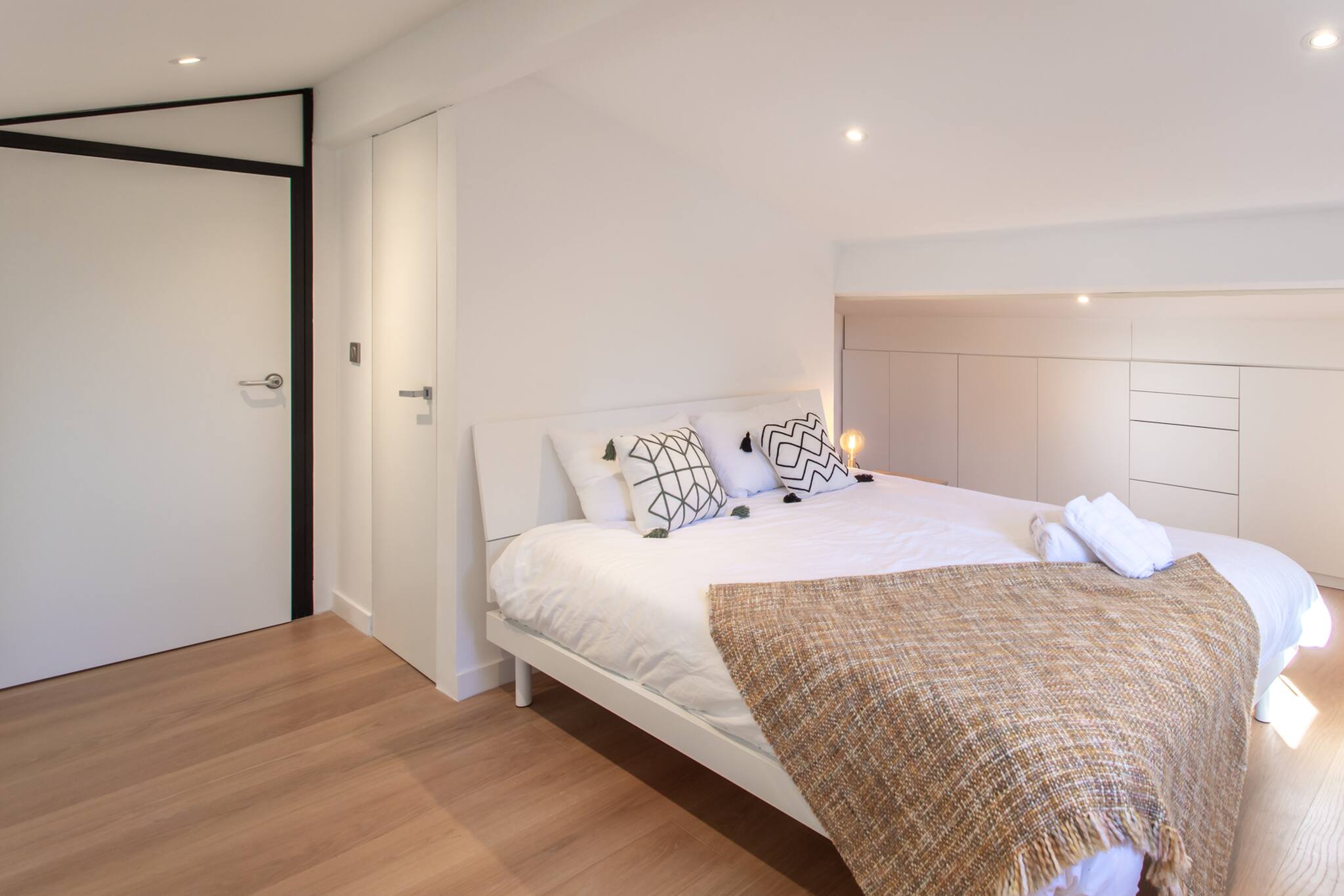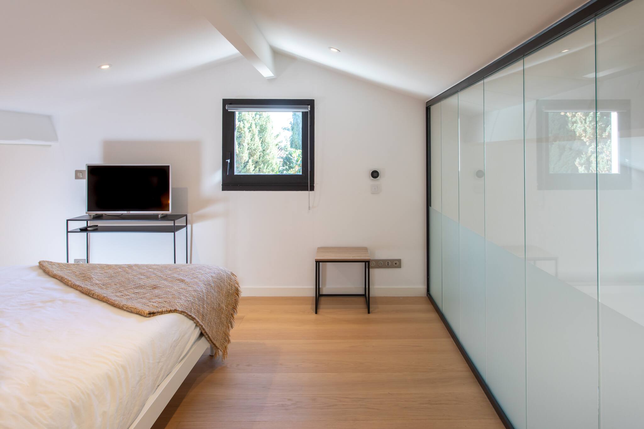 . Une deuxième chambre lit double 160 avec climatisation, espace de travail et rangement
