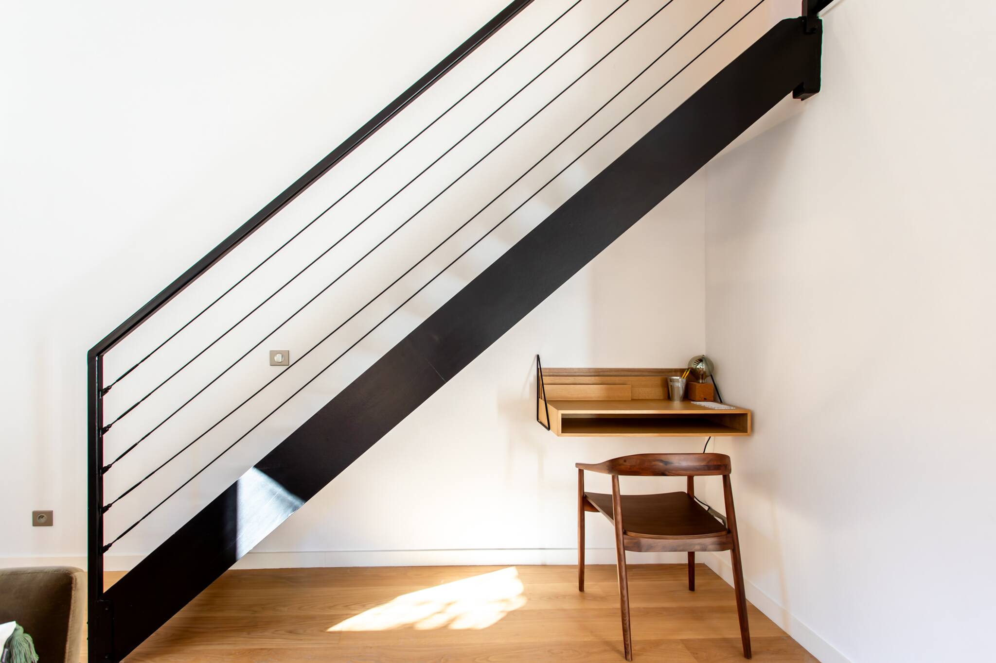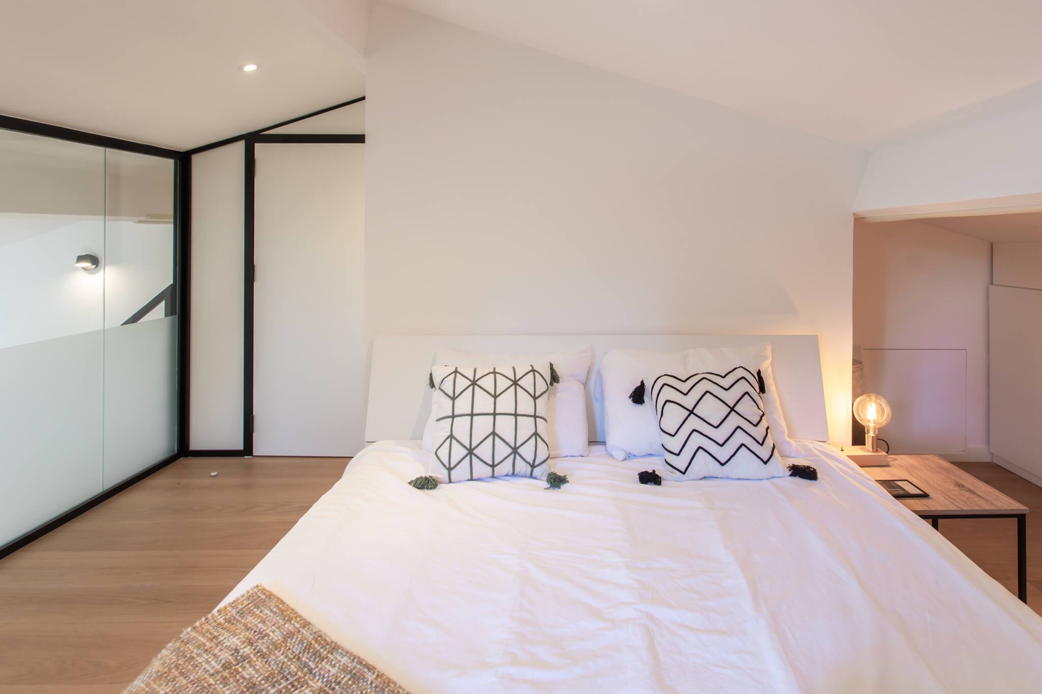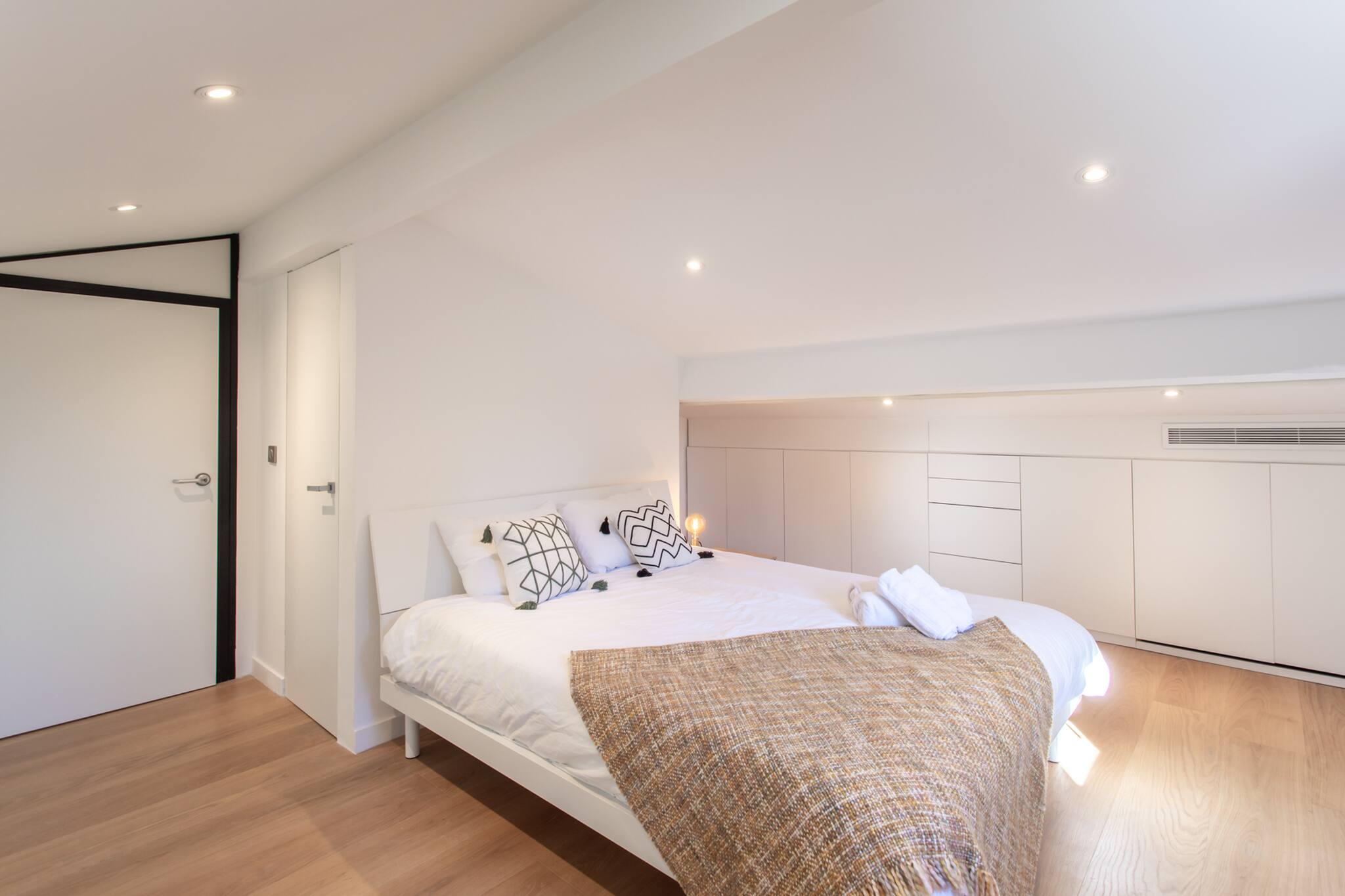 . Une deuxième chambre lit double 160 avec climatisation, espace de travail et rangement