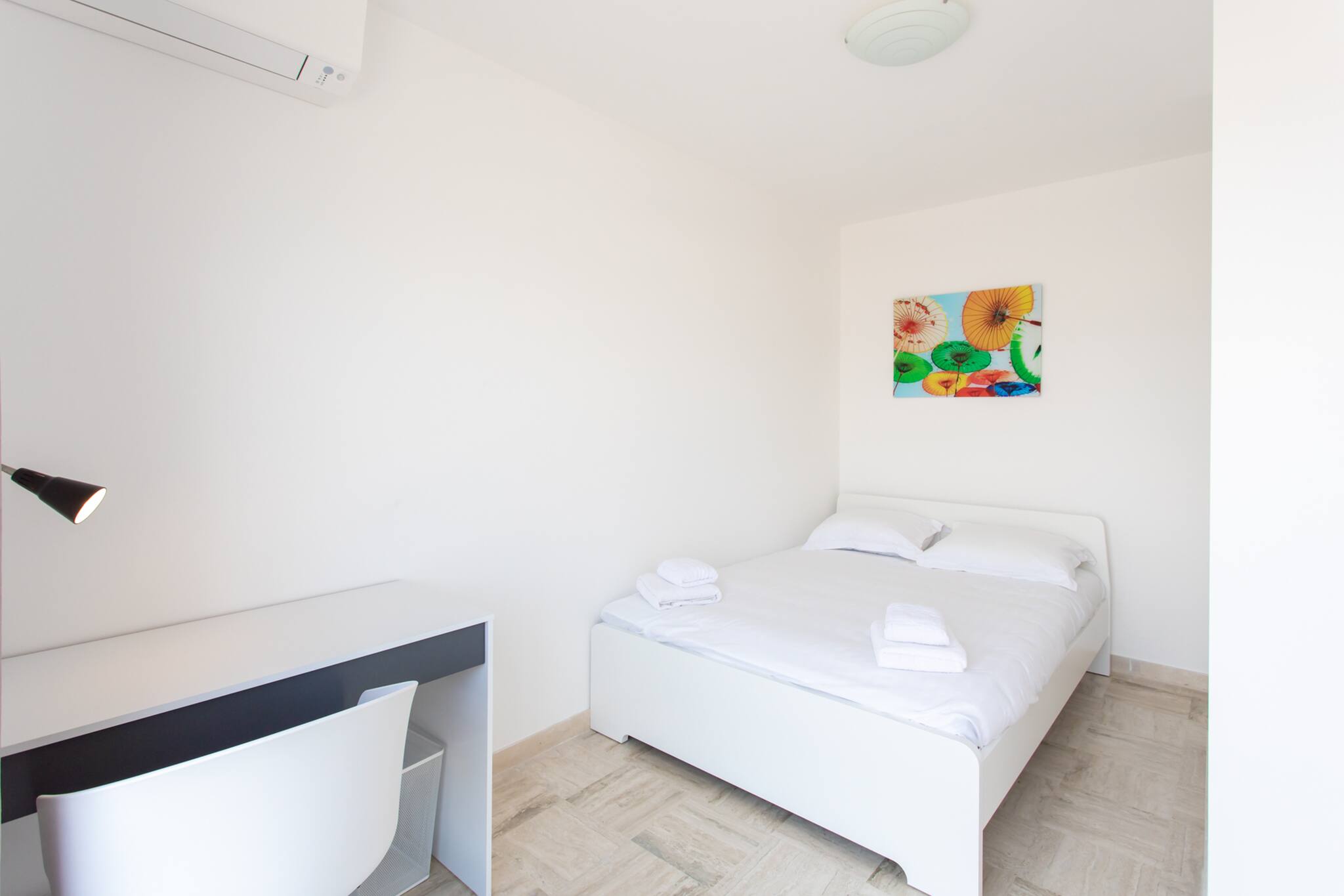. Une deuxième chambre climatisée avec lit double 140cm, un bureau de travail,